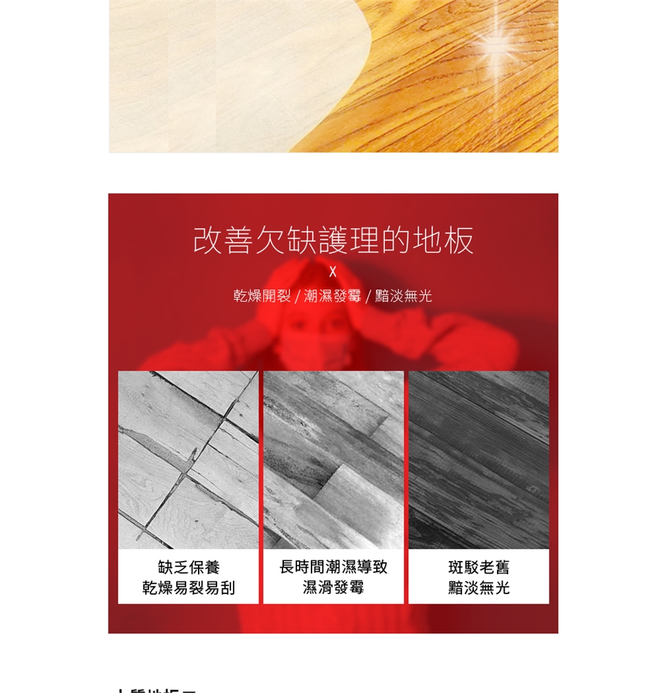 ※適用於:各種木製地板、複合地板以及塗刷過清漆的複合地板。