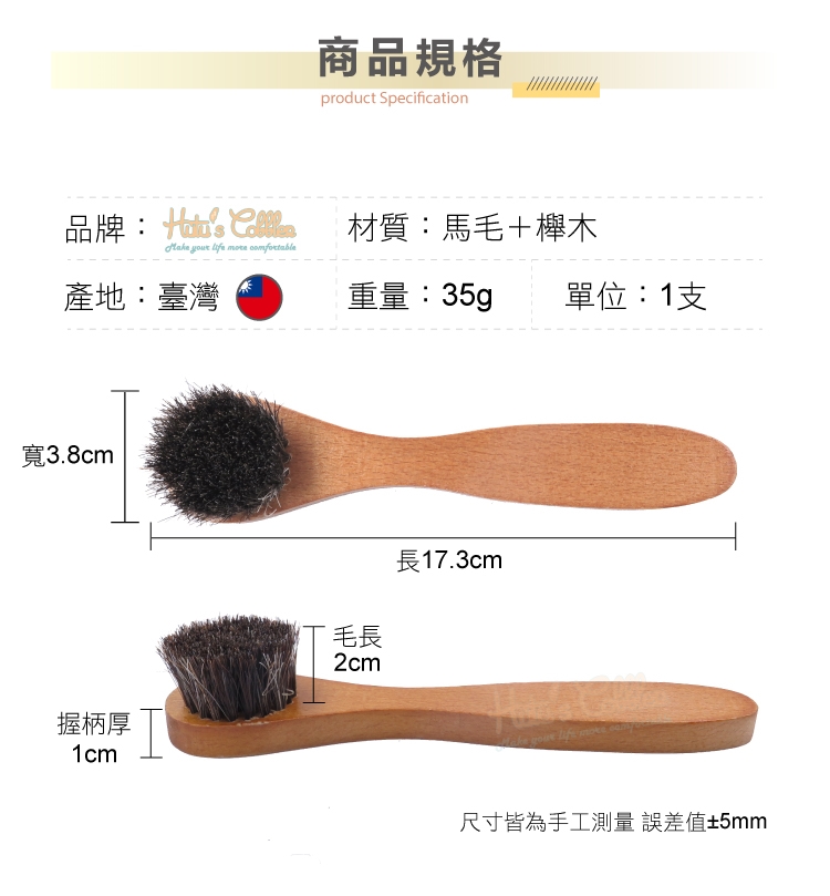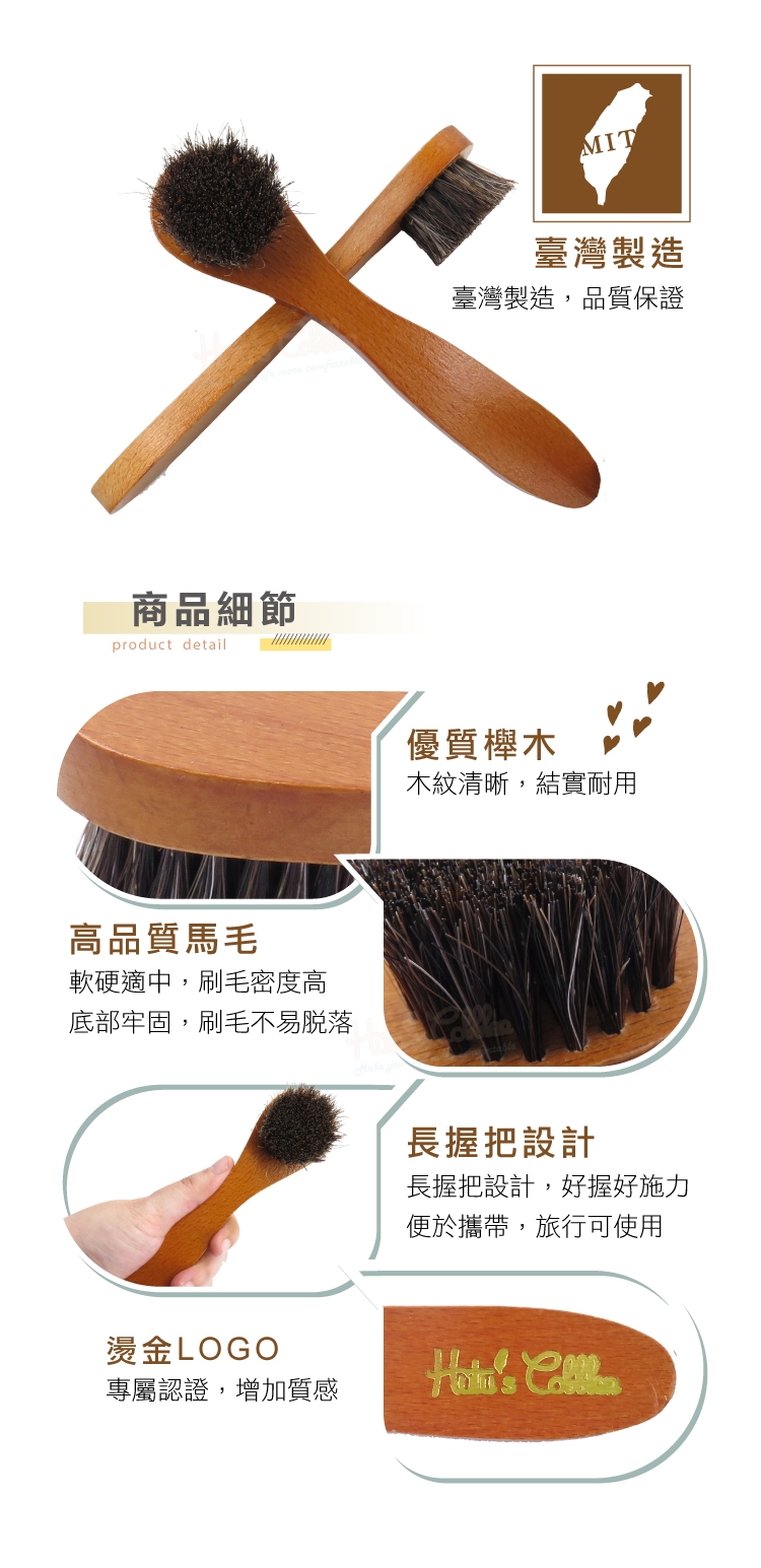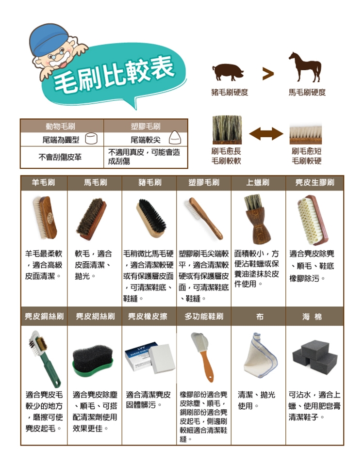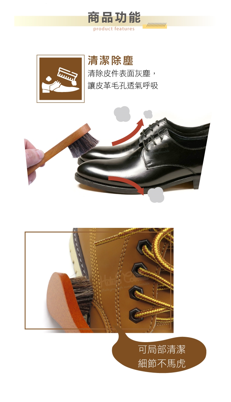 3.保養皮革-上蠟、上油,一刷搞定,馬鬃毛柔軟,不會刮傷皮革。