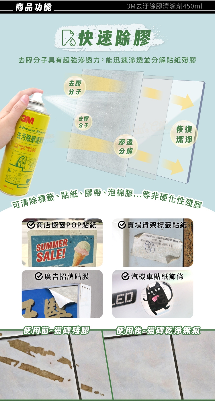 可清除標籤、貼紙、膠帶、泡棉膠...等非硬化性殘膠