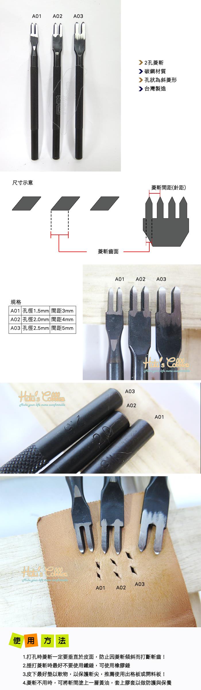1.打孔時菱斬一定要垂直於皮面,防止因菱斬傾斜而打斷斬齒!