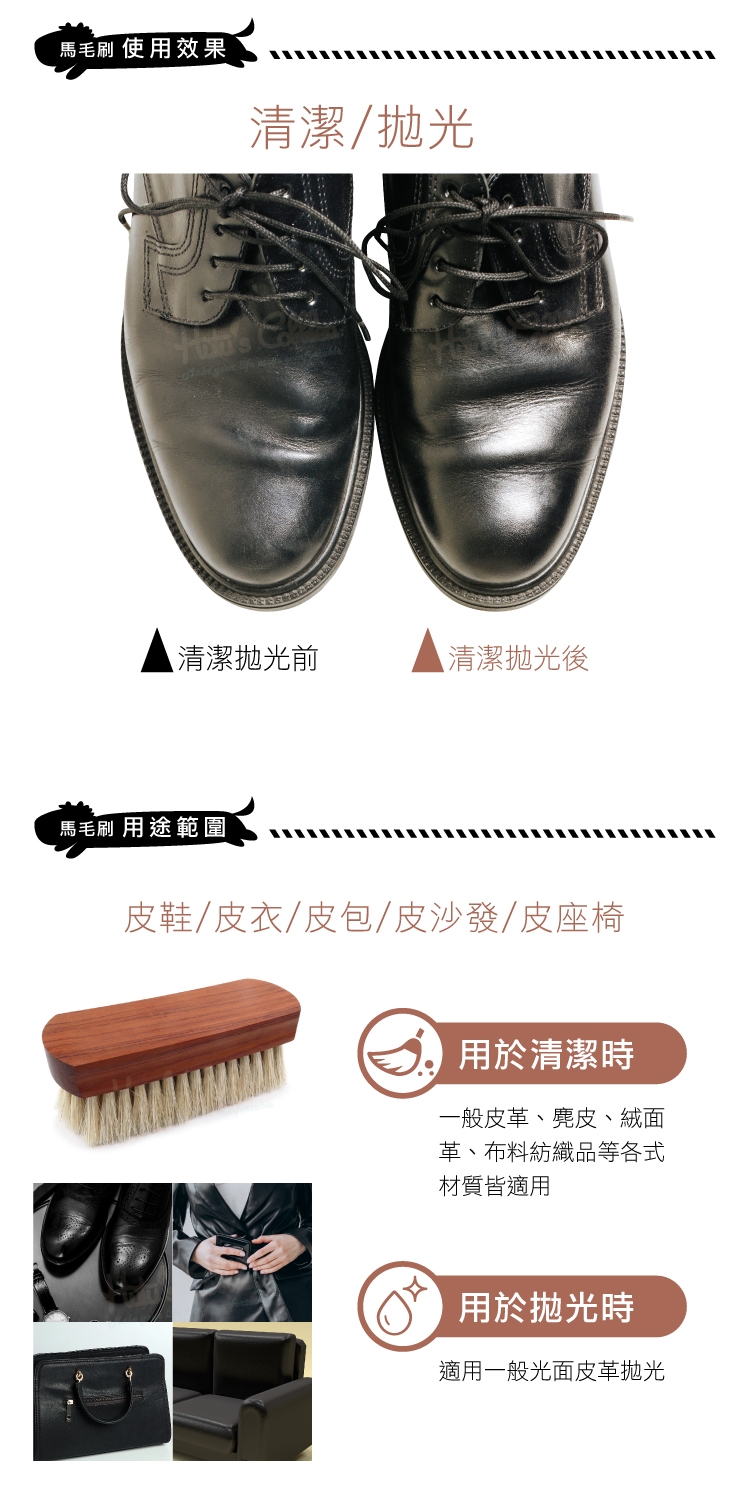 1.清潔除塵:柔軟細緻的馬毛不僅不會傷害皮面,更能將細微灰塵刷除乾淨