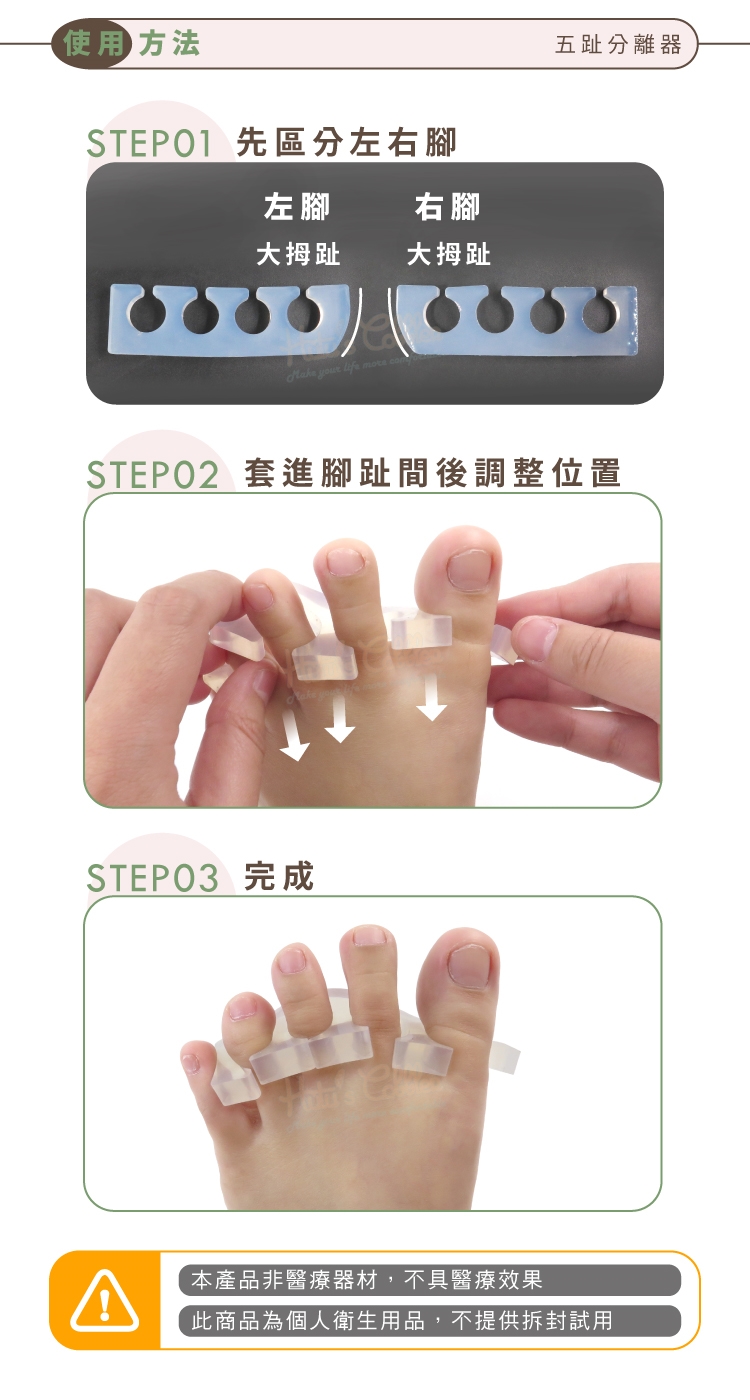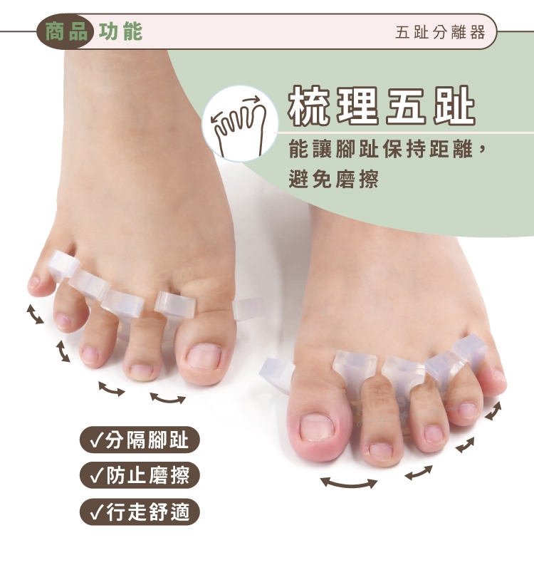 梳理五趾,能讓腳趾保持距離,避免磨擦