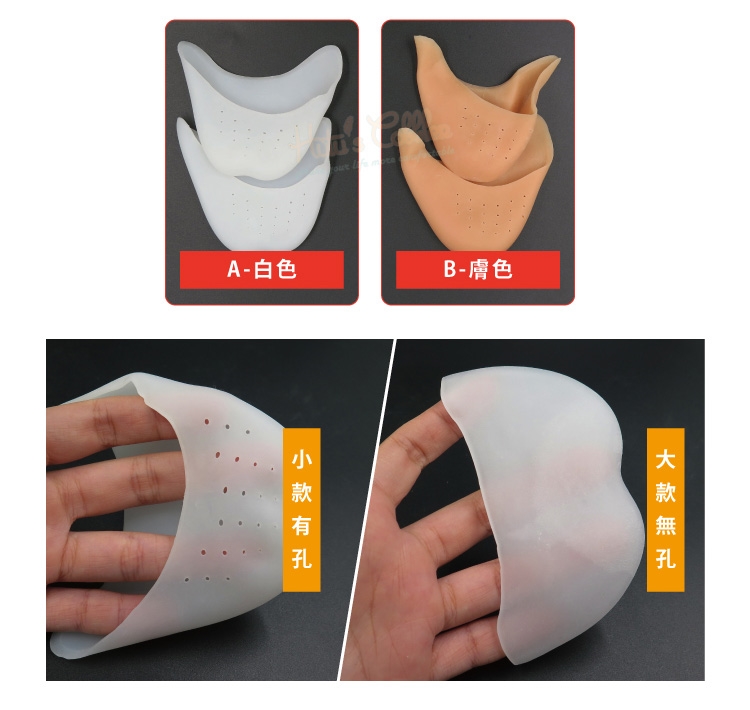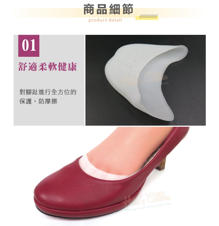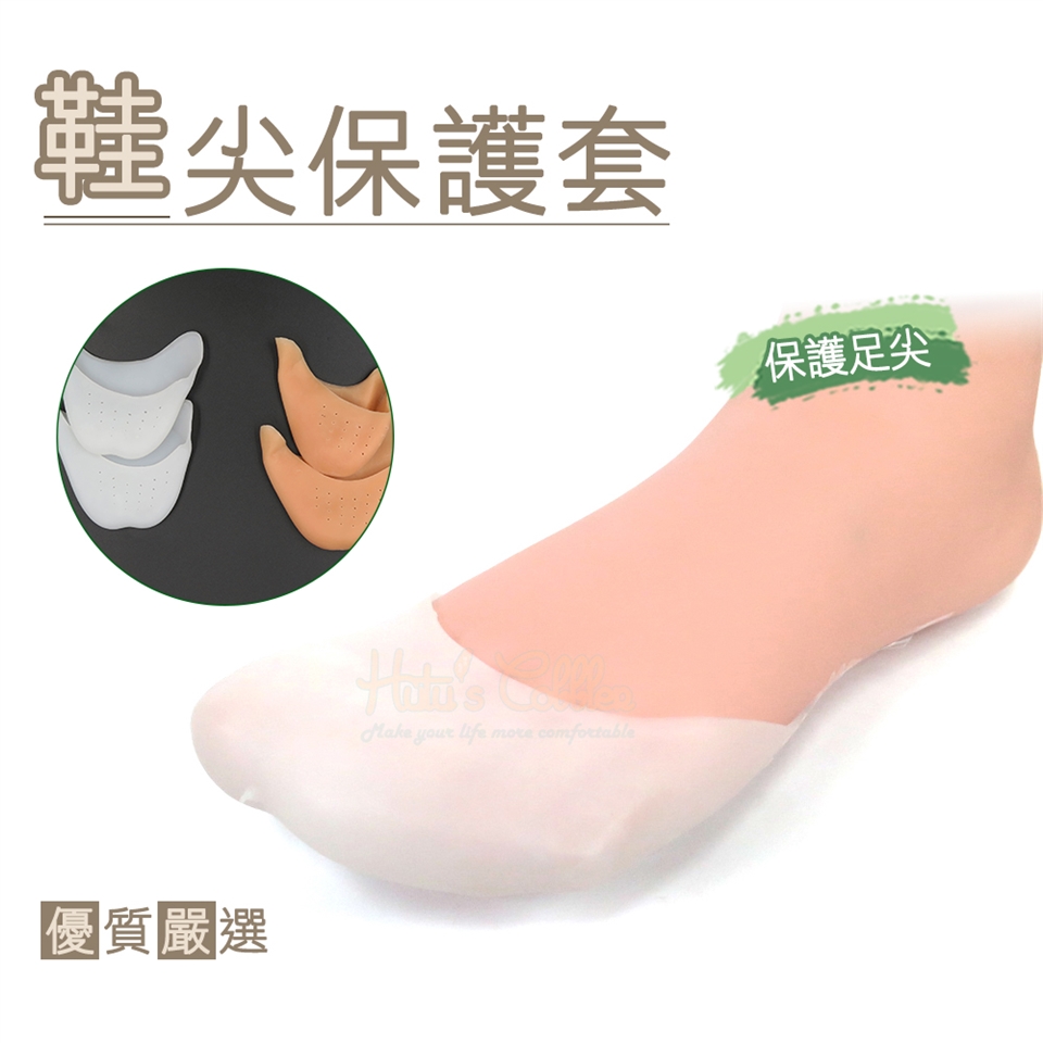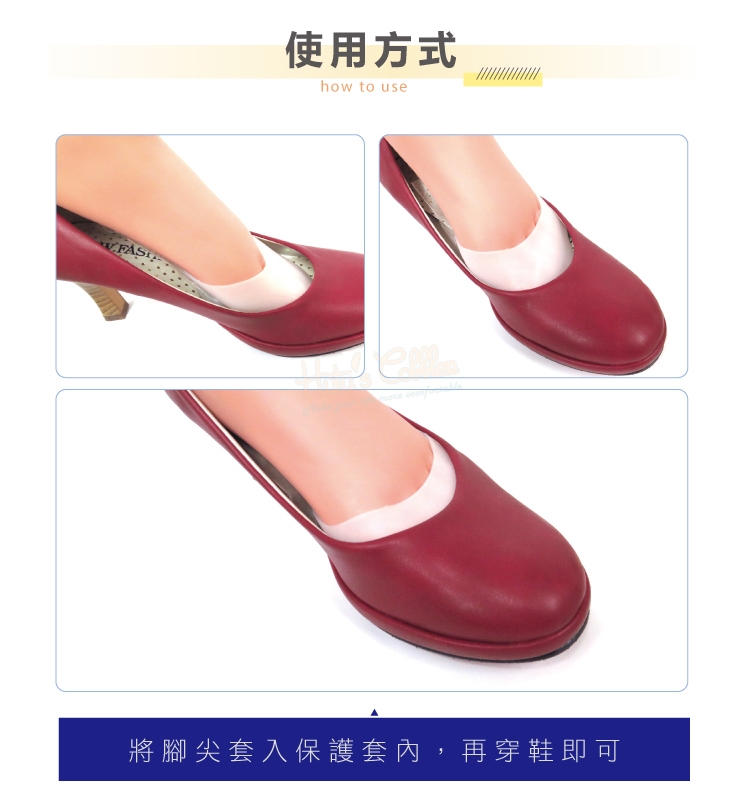 將腳尖套入保護套內,再穿鞋即可