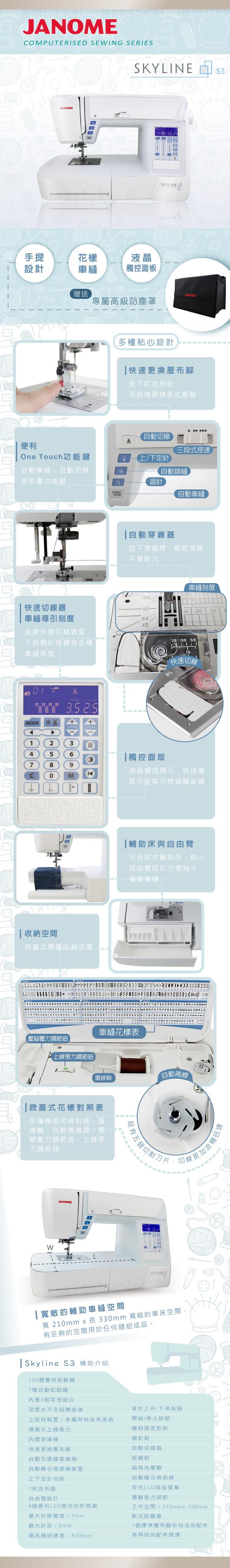 日本車樂美 JANOME 電腦型全迴轉縫紉機S3