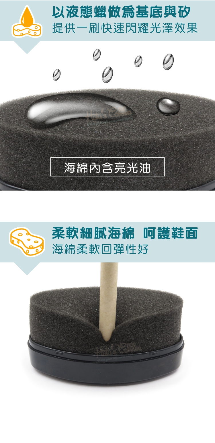 3.海綿內含亮光油:以液態蠟做為基底與矽,提供一刷快速閃耀光澤效果