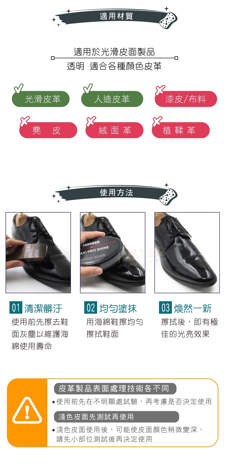 6.鞋油透明無色,可用於所有顏色的鞋子