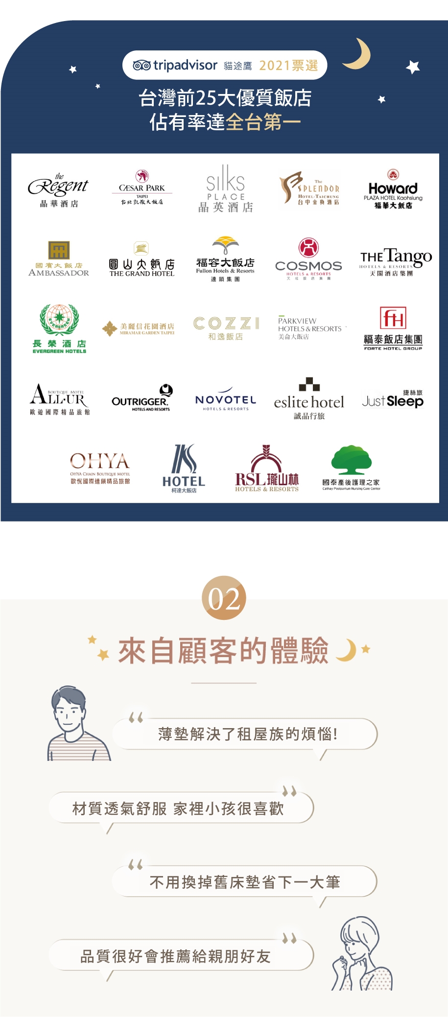 ‧床墊及枕頭為貼身用品,鑑賞期並非「試睡期」。鑑賞期間僅供短暫測試床墊或枕頭的合適度是否合宜,消費者在測試時須為產品妥善覆蓋,以保持產品之清潔,如有殘留異味、污漬或是毛髮,將視為汙損而恕不接受退換貨。