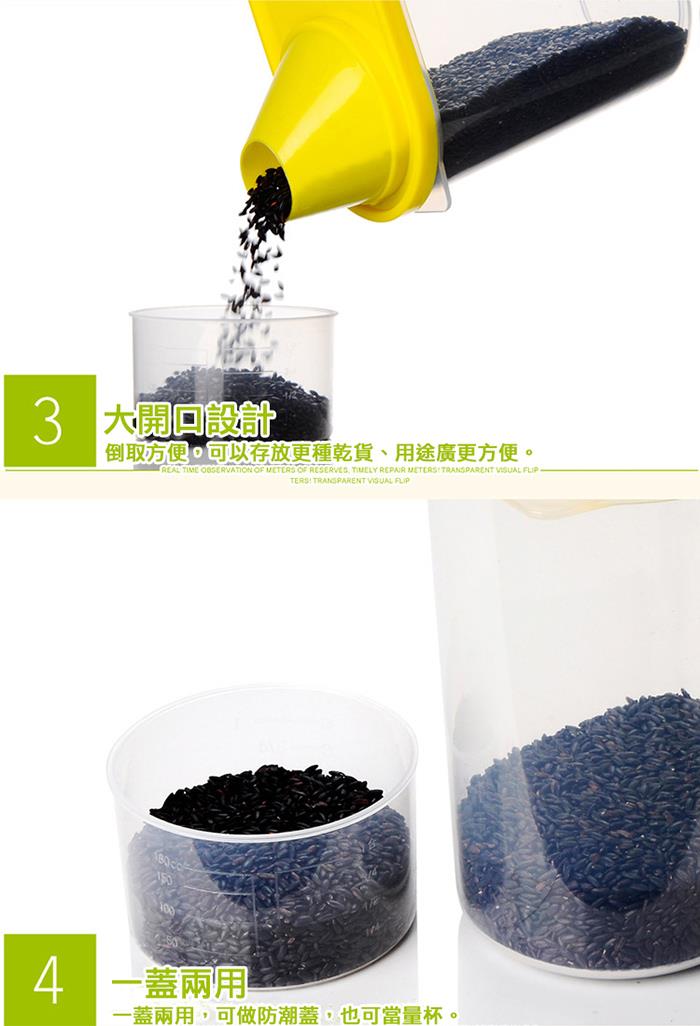 密封蓋設計,防潮防霉防蟲功能一流,蓋上附有量杯。