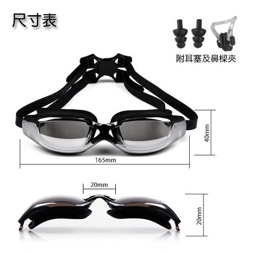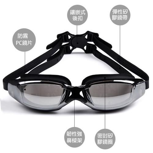 電鍍平光大框防水防霧成人泳鏡(YY-6311)