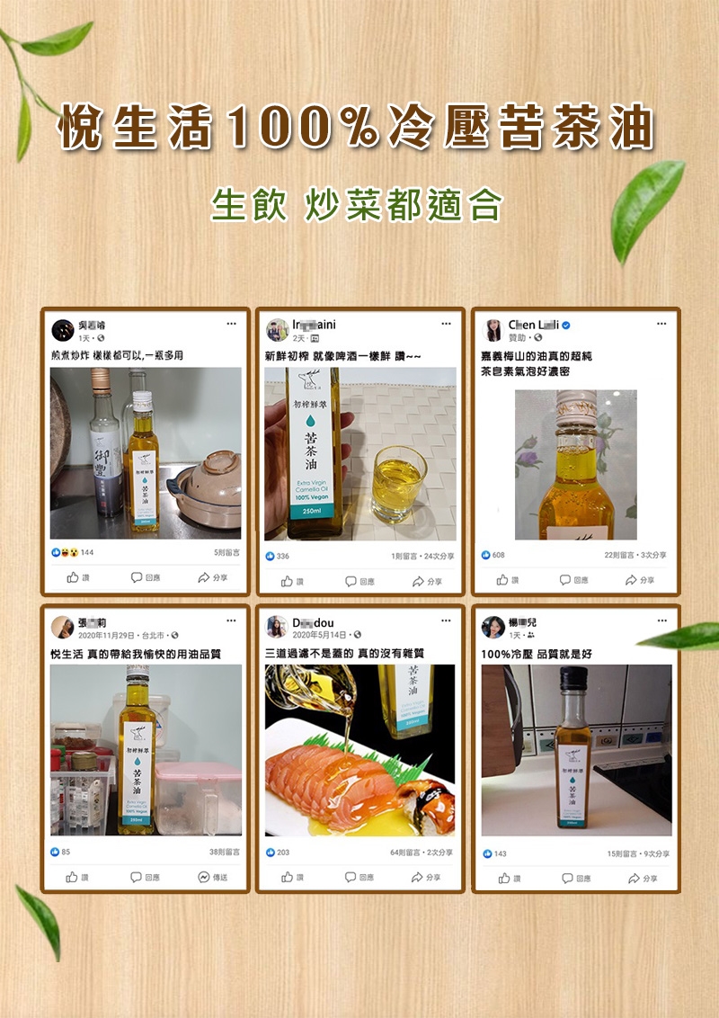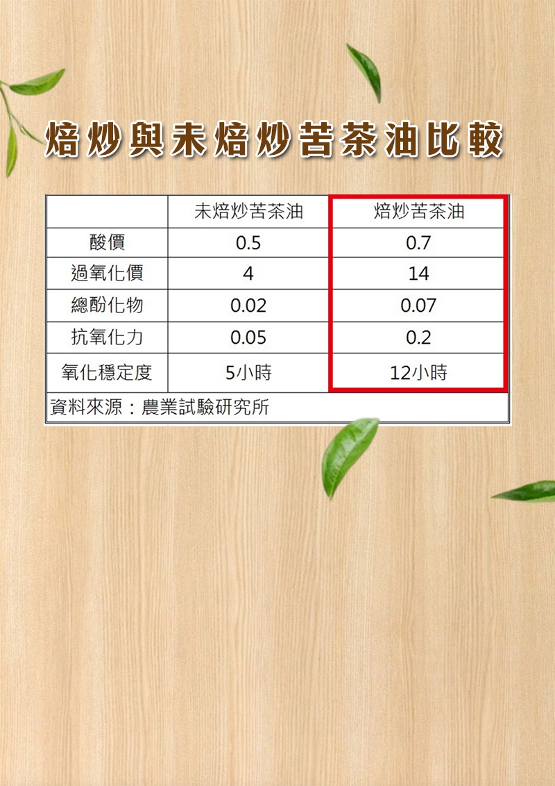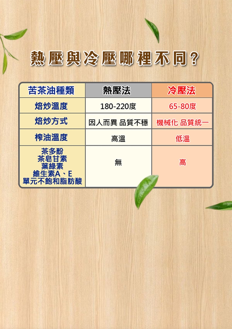 低溫壓榨的苦茶油,早上來一小杯可有效顧健康