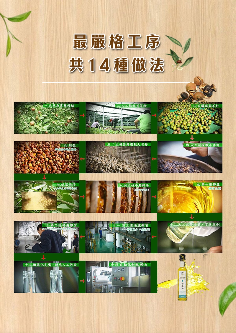 於是走遍全台,品嘗各地苦茶油,細細尋覓,終於發現最優質的苦茶油必須結合優良的品種及卓越的技術,單就品種好,提煉技術差,反而壞了品質;品種差那就更不用說了