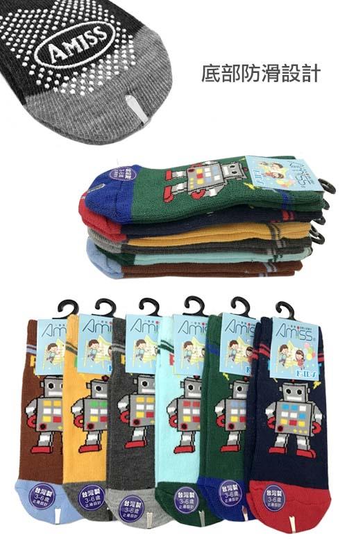 【Amiss】MIT機器人止滑直版童襪/6入組(3405-16)