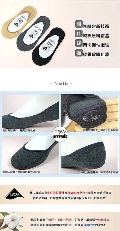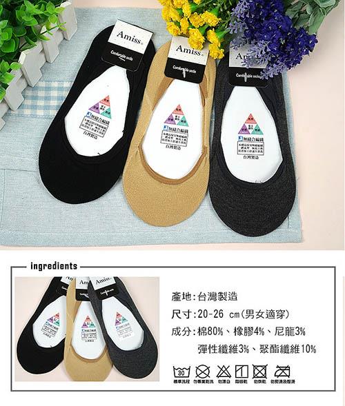 【Amiss】MIT純棉無縫合防滑隱形襪/2黑2灰-4入組(M006)