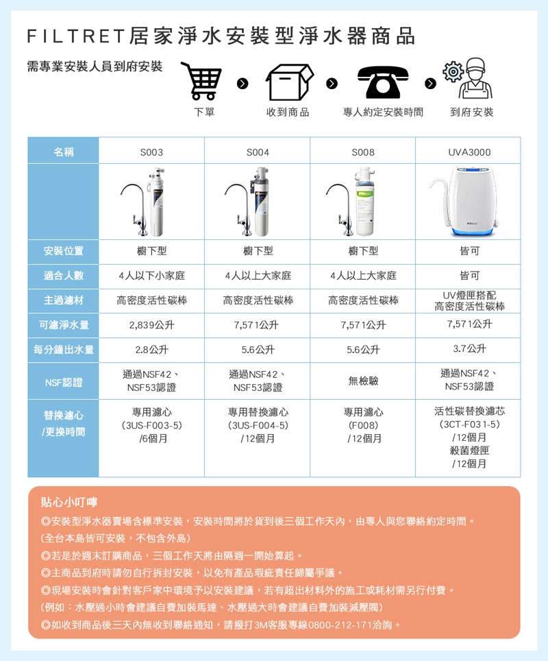 3M S004極淨便捷系列淨水器超值組(兩年份濾芯+原廠鵝頸+基本安裝)