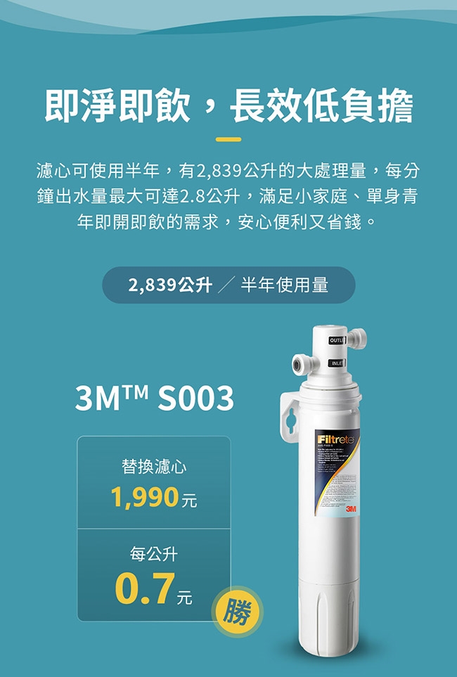 3M 極淨便捷系列淨水器S003特惠組 加贈一支濾心