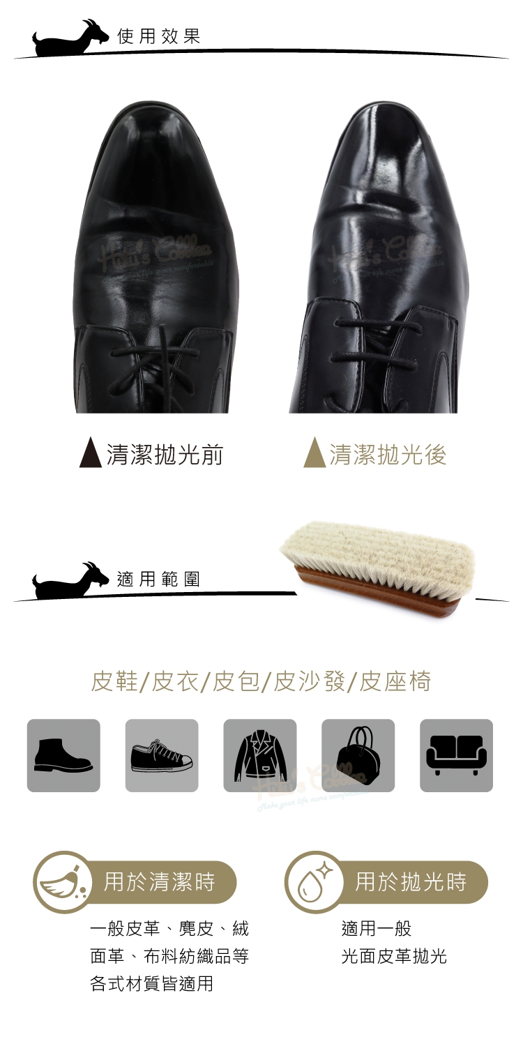 頂級天然山羊毛精細拋光鞋刷,嚴選百分之百純正天然山羊毛,