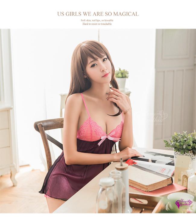 深V胸口搭配緞面蝴蝶結點綴更顯吸睛,