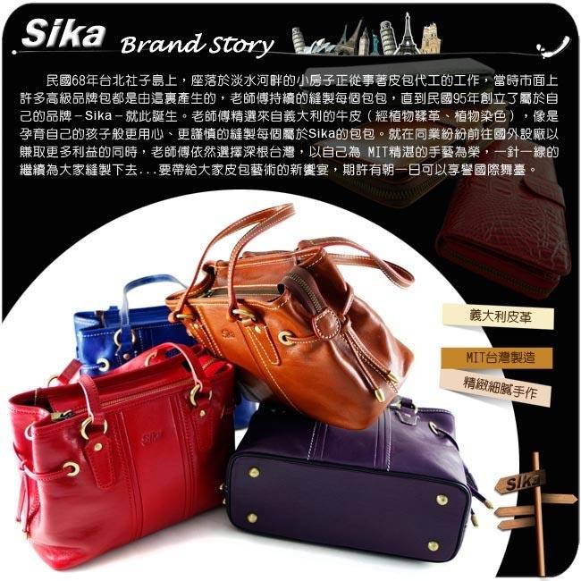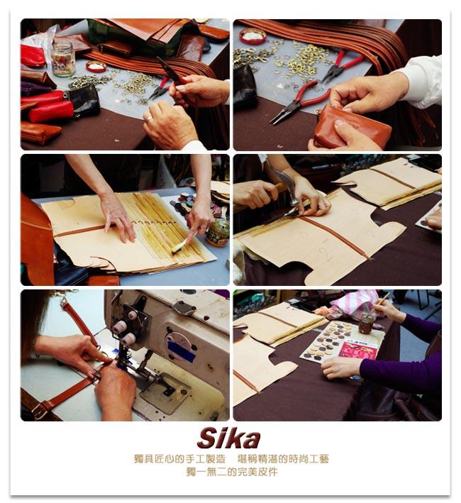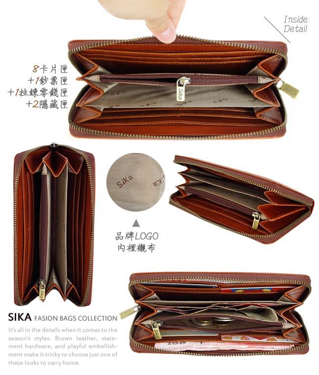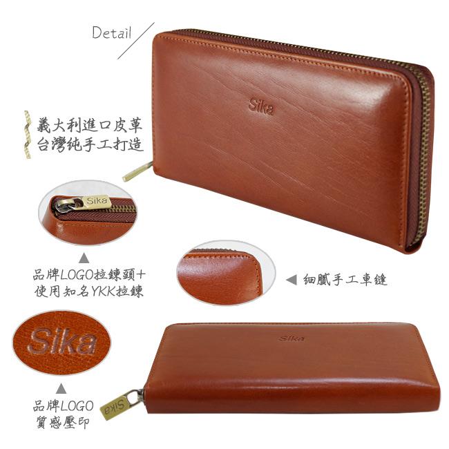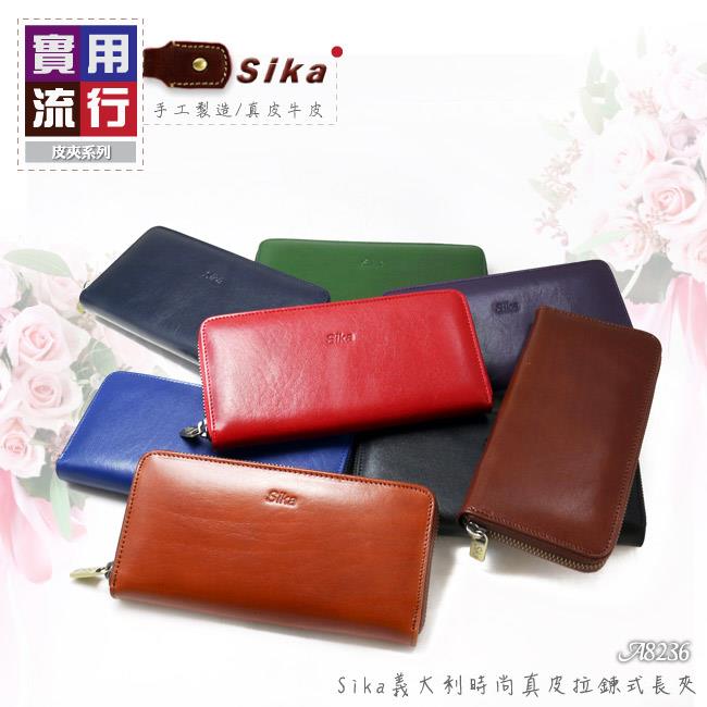 Sika義大利時尚真皮拉鍊式長夾A8236-08深墨綠