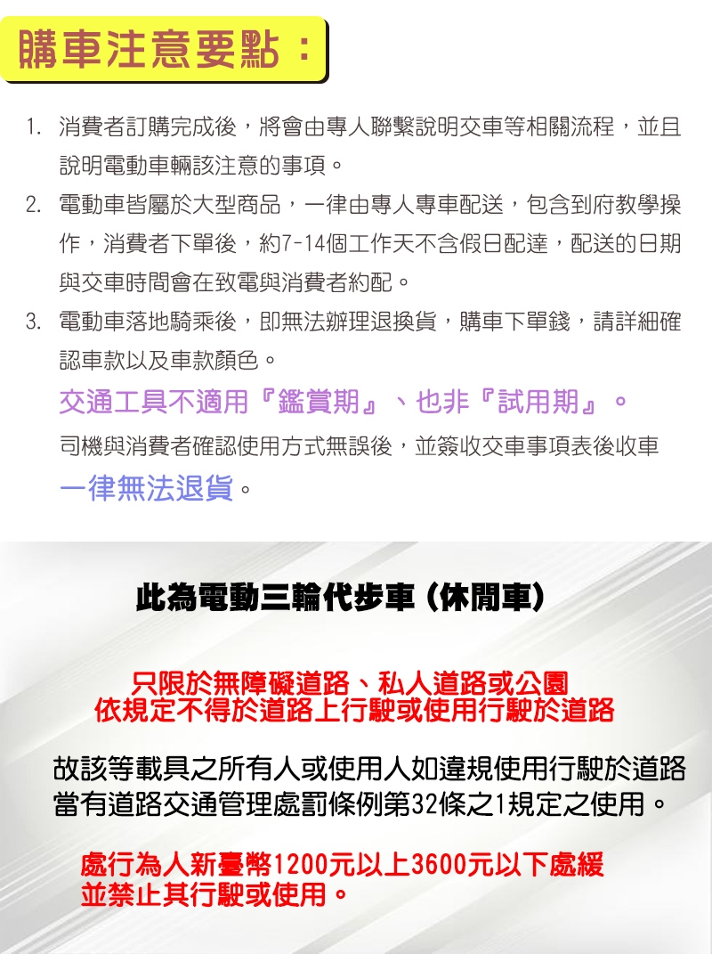 ※不得行駛在快車道上,只限於無障礙道路之使用。