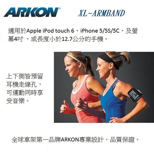 | ★適用於Apple iPod touch 6、iPhone 5/5S/5C、及螢幕4吋 、或長度小於12.7公分的手機。 ★用於將 iPod 或手機固定在手腕或手臂上,是您慢跑、健走、室內健身、或騎車時的好幫手。 ★透明塑膠防水保護套,下雨或流汗時可適度防止手機進水,還可直接觸控 iPod 或手機。 ★鬆緊帶使用可伸展、抗汗、高科技合成橡膠材質,可輕鬆調整魔鬼粘長度確定鬆緊與舒適度。 ★不用去除手機套,小內袋可放信用卡、悠遊卡、鑰匙或零錢。 ★上、下側皆預留耳機走線孔,可於運動時享受音樂。 ★全球車架第一品牌ARKON專業設計,品質保證。 |