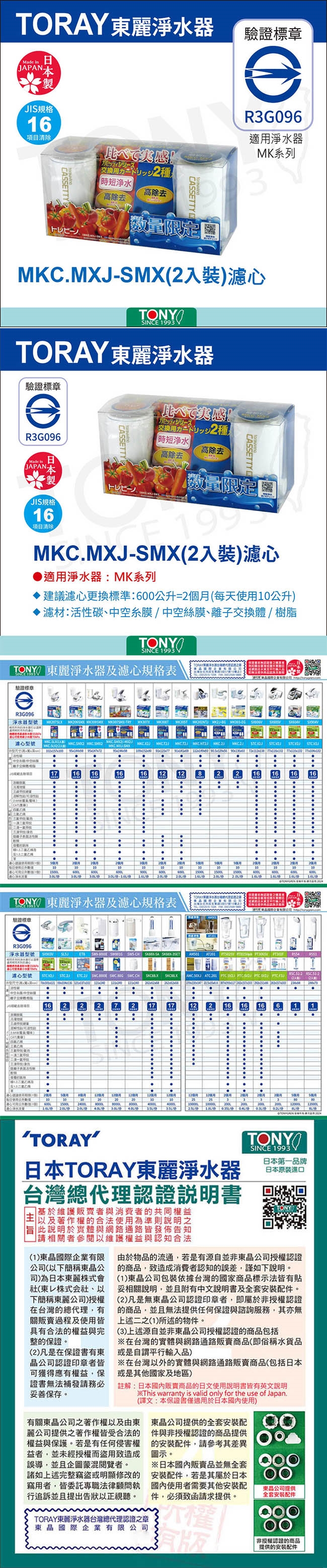 TORAY日本東麗 快速淨水實感濾心組合 MKC.MXJ-SMX(內2個濾心. MKC.MXJ(1.6L/分+ MKC.SMX(3.0L/分)