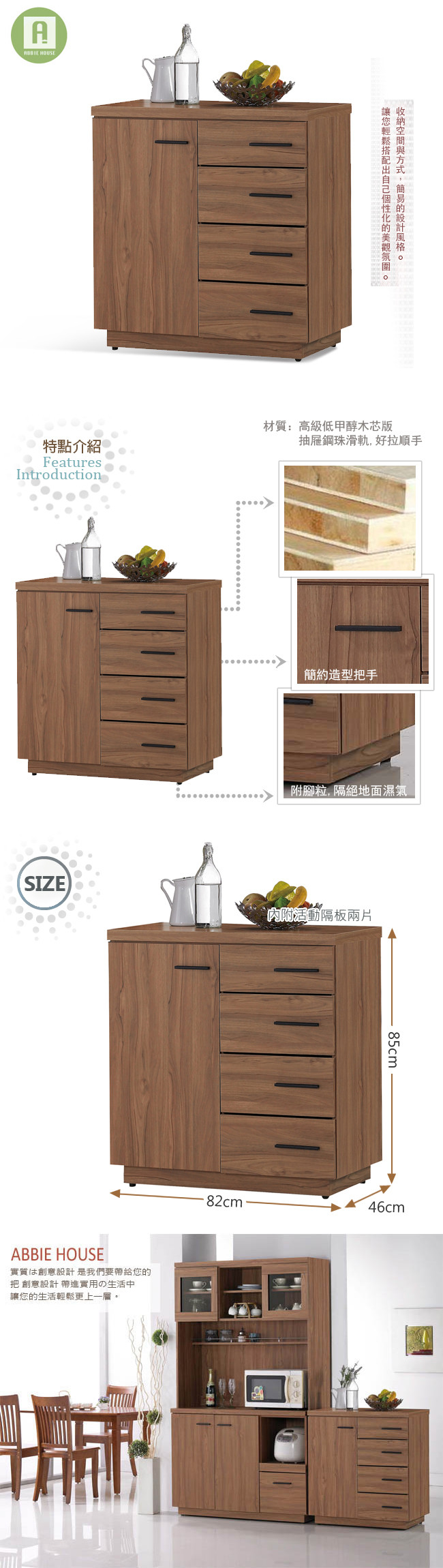 此款富有原木自然氣息的居家風格,視覺感官上讓人感到沉穩耐看,特別營造出溫暖的氣息,可以使心靈休息時感到放鬆~柚木色耐髒好搭配,大大了提升使用期限。整體採用防潮防蛀木芯板,中間為實木材質,上下夾板包覆,使整體結構更加穩固耐用;而抽屜使用鋼珠滑軌的拉合結構,滑順度佳讓您置物取物輕鬆又便利!現在購買享專人送到府服務,免組裝的服務喔!