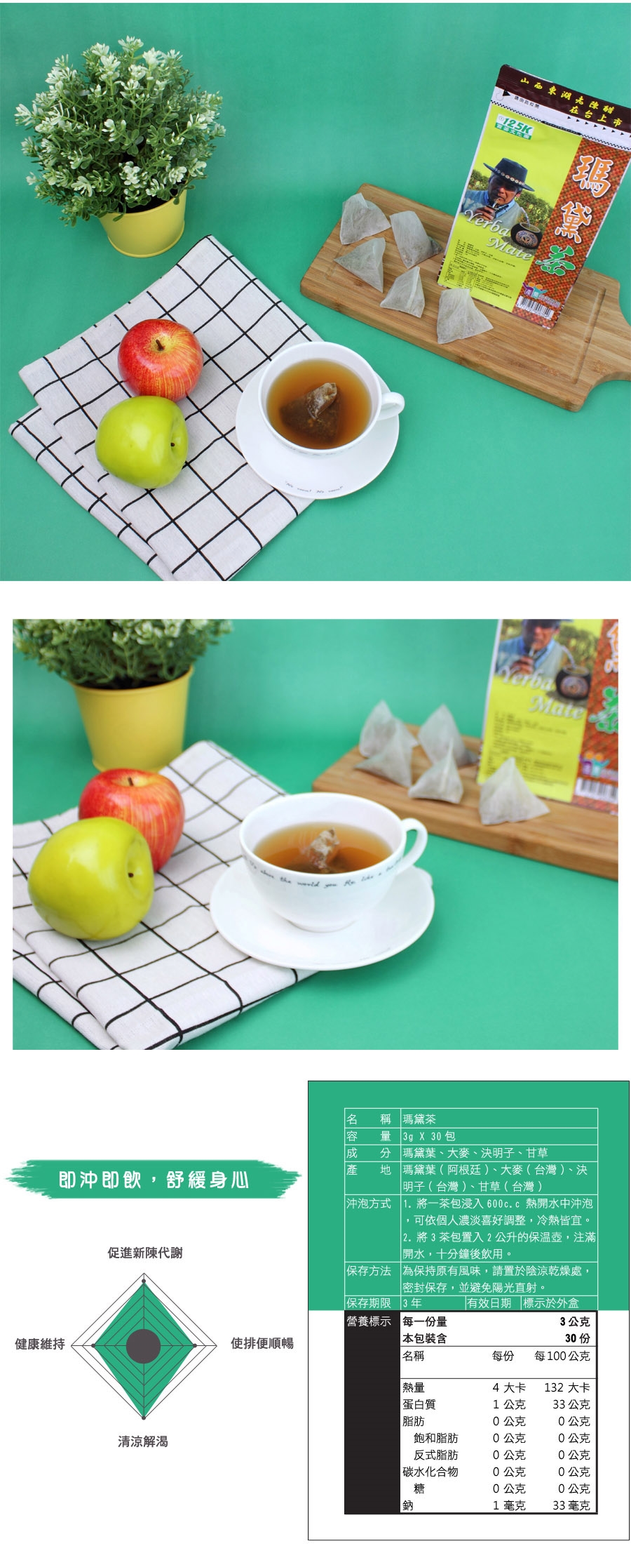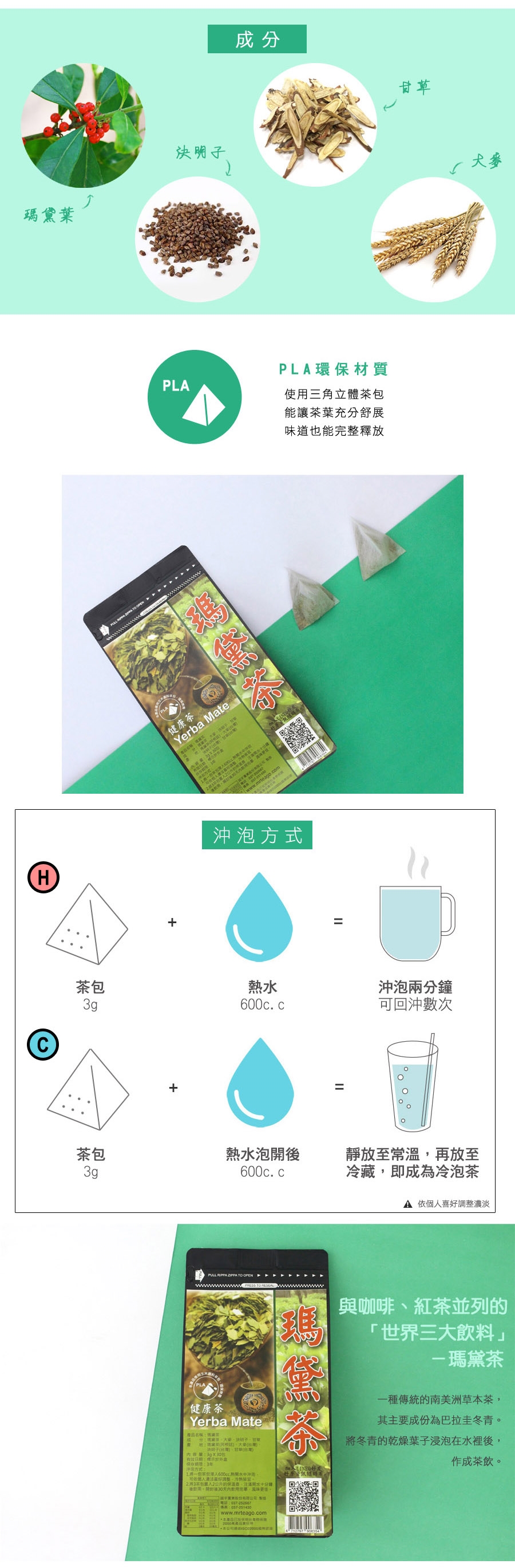1.將一茶包浸入600c.c 熱開水中沖泡,可依個人濃淡喜好調整,冷熱皆宜。