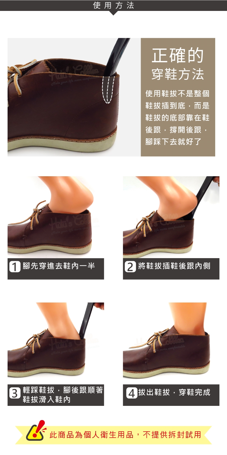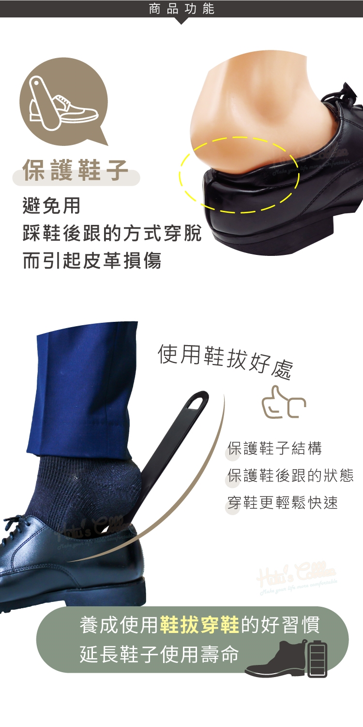 使用鞋拔好處:保護鞋子結構、保護鞋後跟的狀態、穿鞋更輕鬆快速