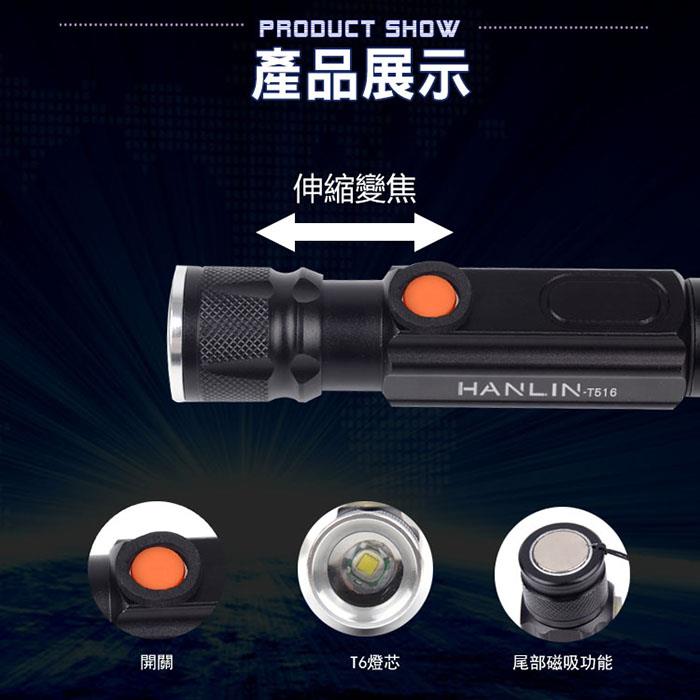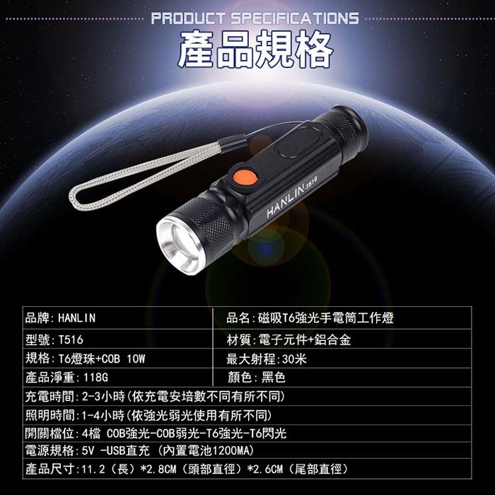 品名:磁吸T6強光手電筒工作燈 COB USB直充
