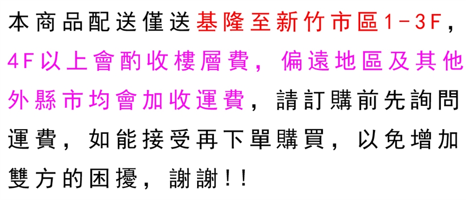 PS-此商品配送區域限基隆至新竹市區(其他地區需加價)