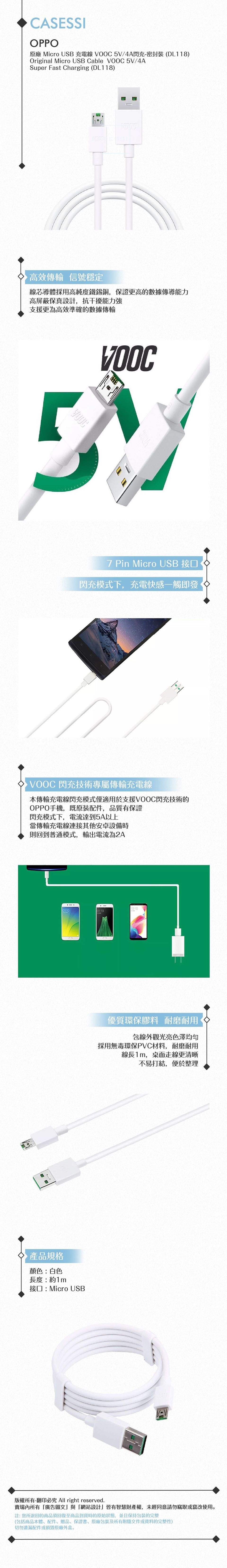 品名:Micro USB充電線 VOOC 5V/4A閃充