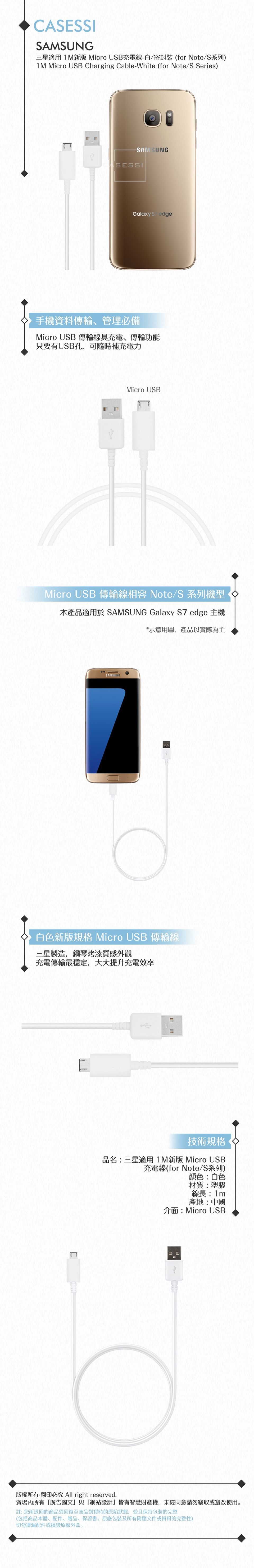 品名:Samsung 三星適用 1M新版 Micro USB充電線-白 ( for Note/S系列 )