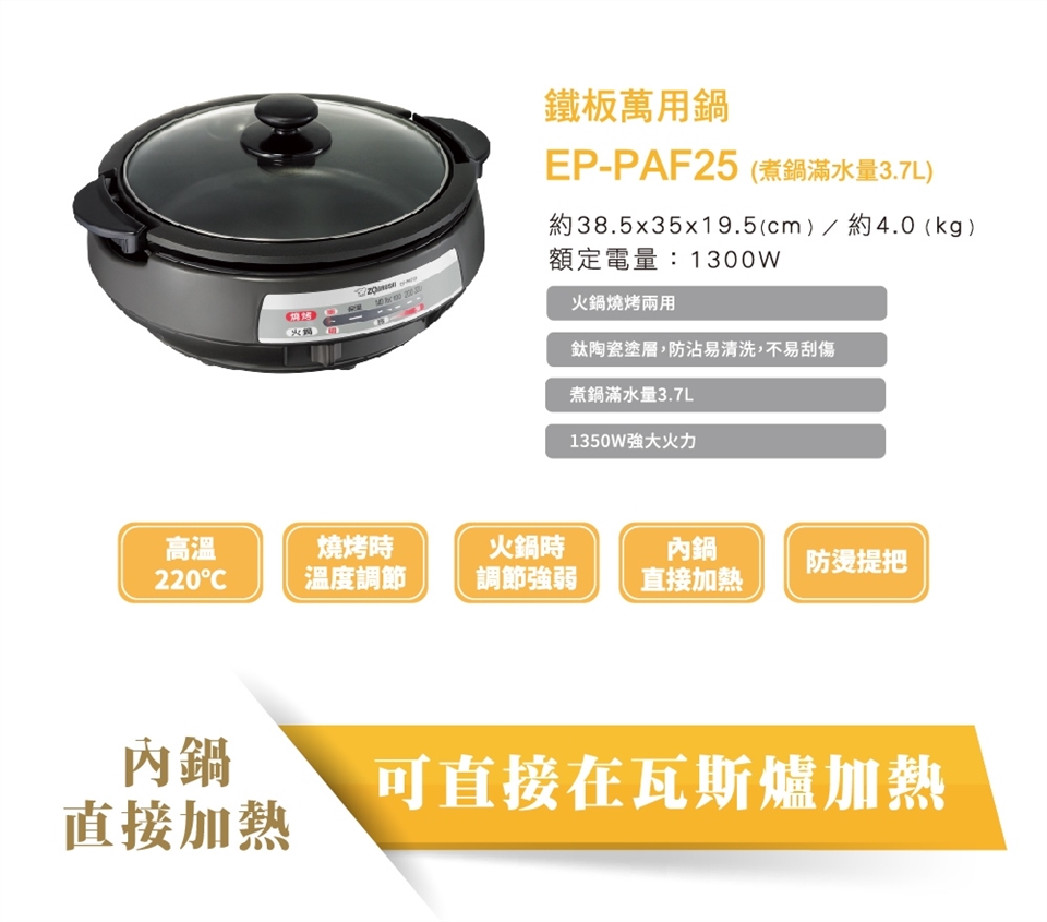 象印*3.7L*鐵板萬用鍋(EP-PAF25)