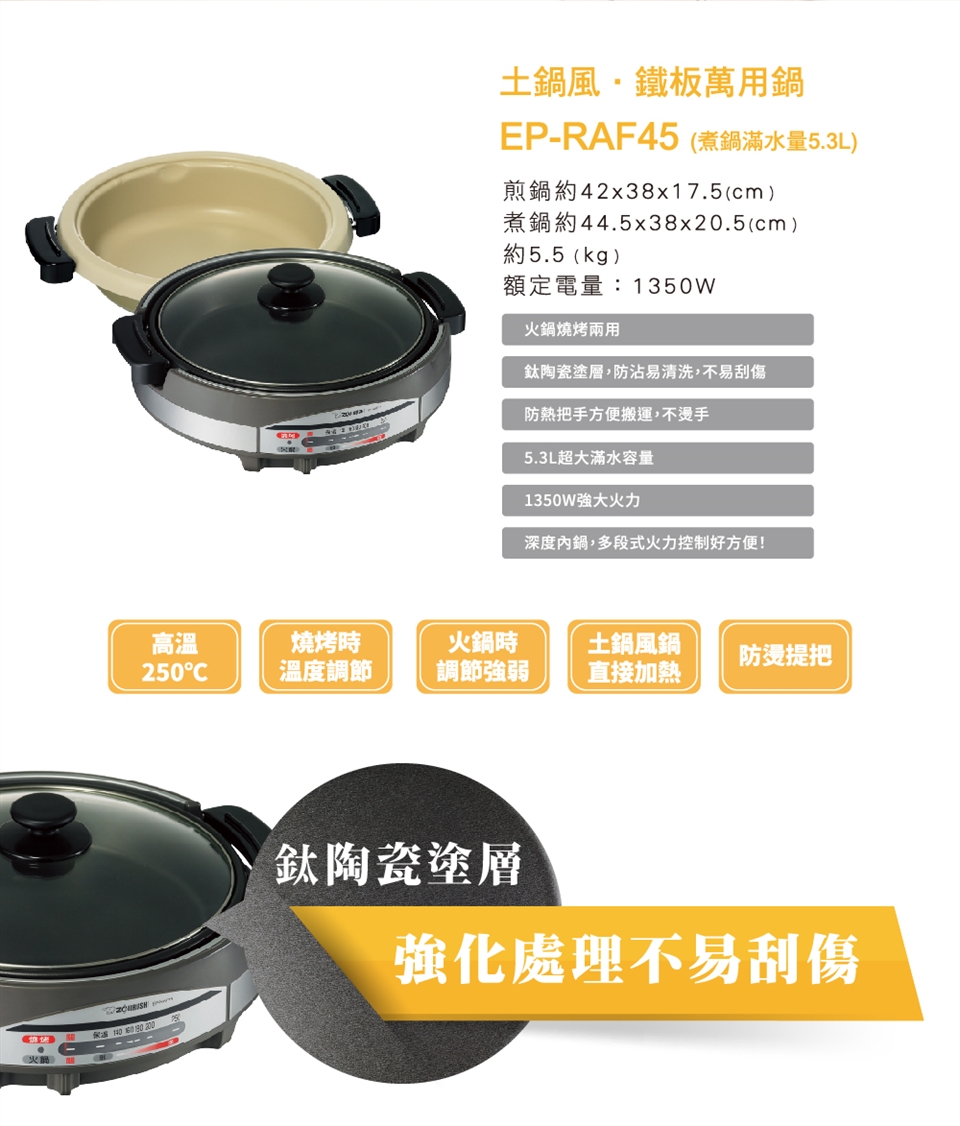 象印*5.3L*鐵板萬用鍋(EP-RAF45)