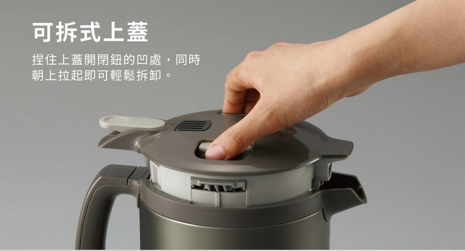 可拆式上蓋:捏住上蓋開閉鈕的凹處,同時朝上拉即可輕鬆拆卸