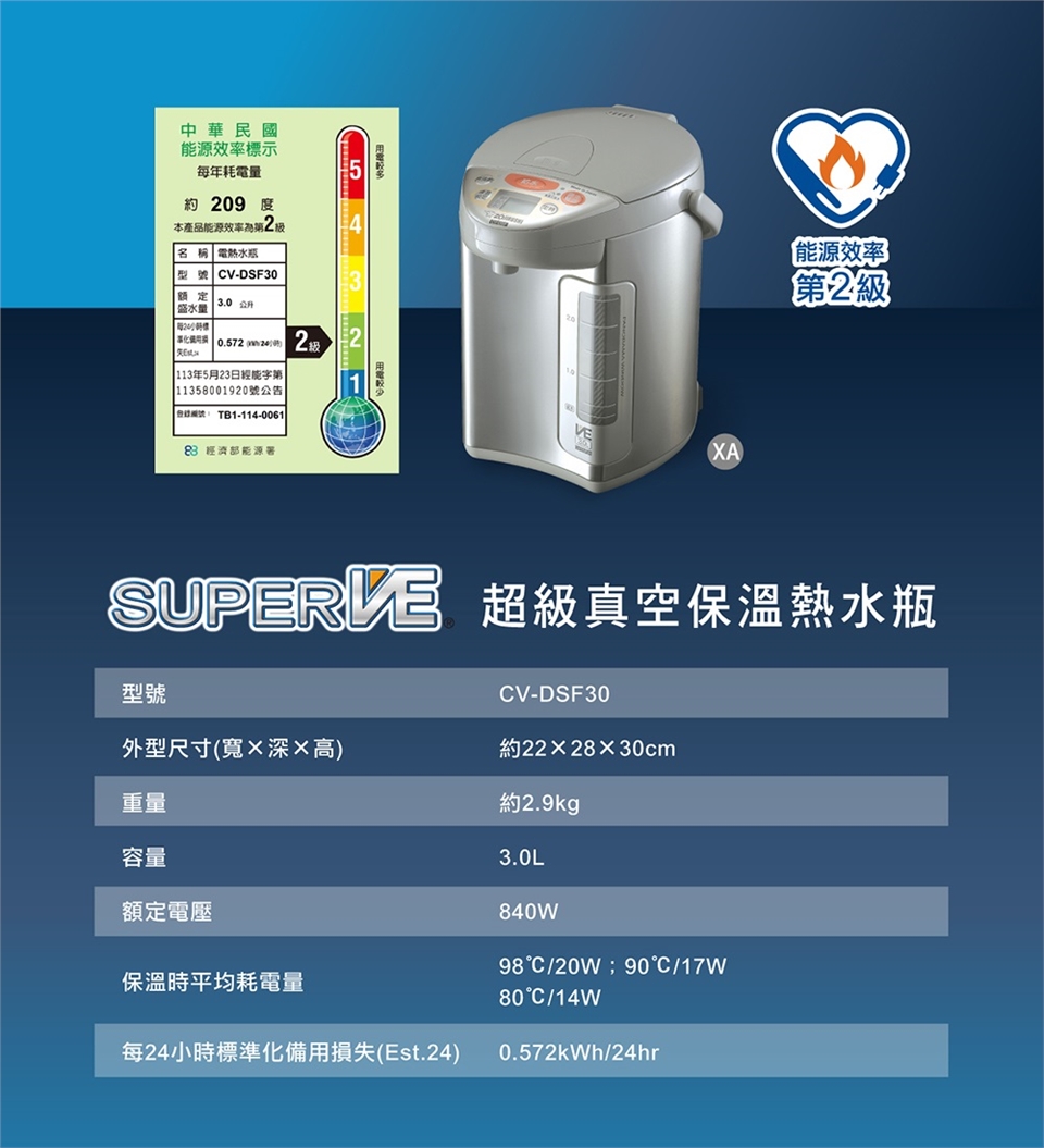 (1) 省電保溫(90℃)時所耗電力只有17W。