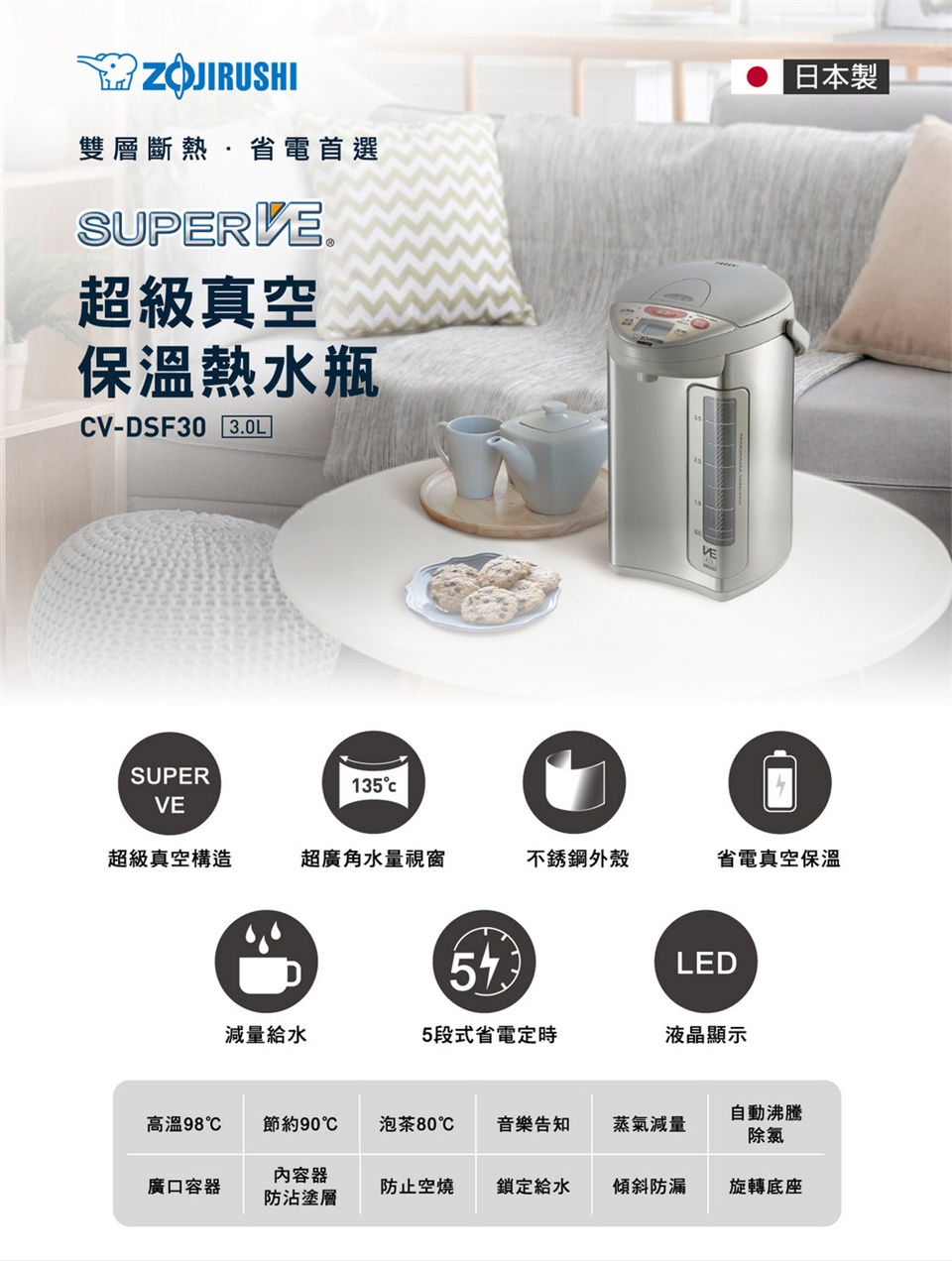 象印*3公升* Super VE 超級真空保溫熱水瓶(CV-DSF30)