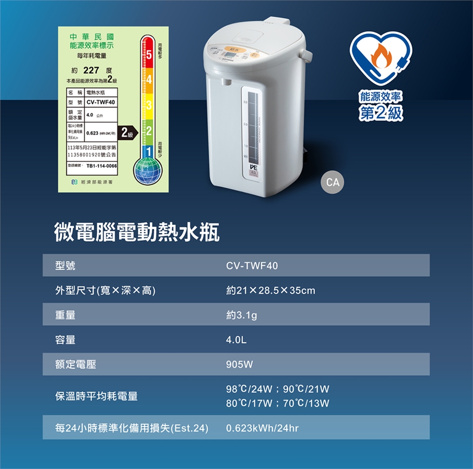 象印*4公升* SuperVE真空省電微電腦電動熱水瓶(CV-TWF40)