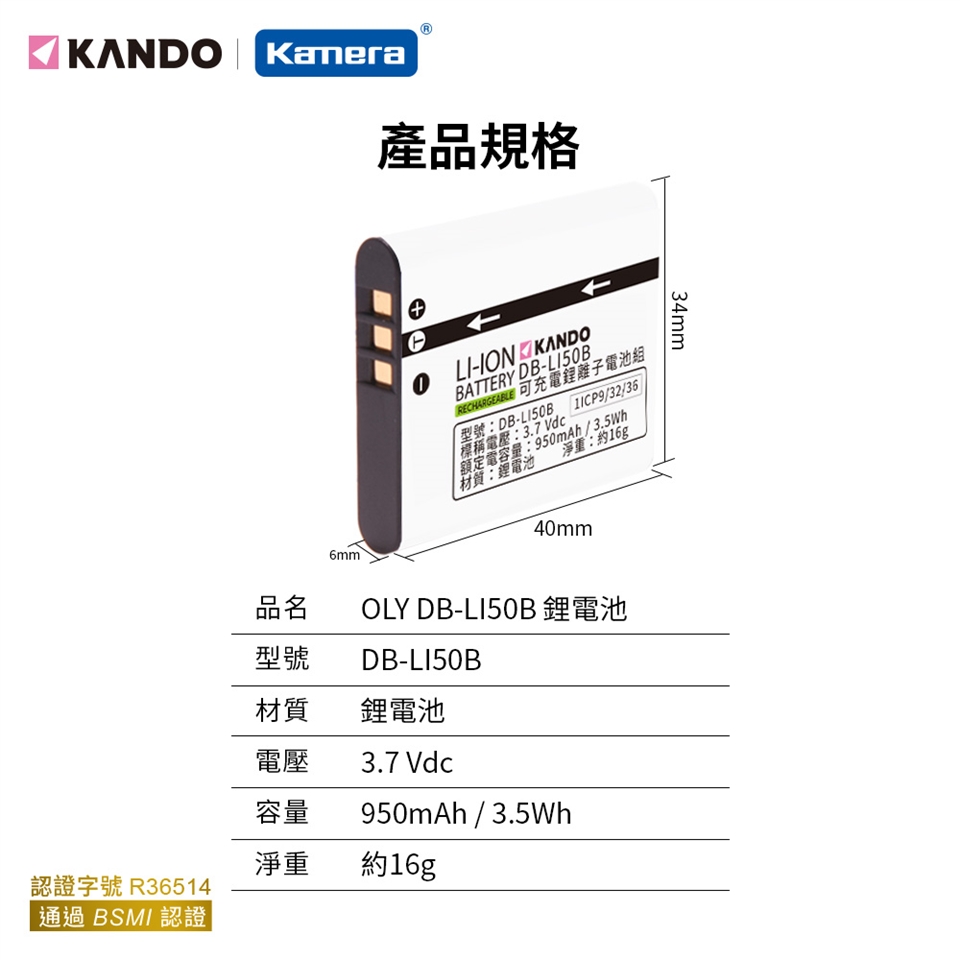 包裝內容:OLY DB-LI50B 鋰電池*1