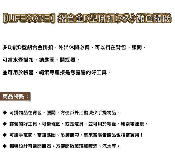 ◆ 露營的好工具,可掛碗籃、或是燈具,並可用於帳篷、繩索等連接。