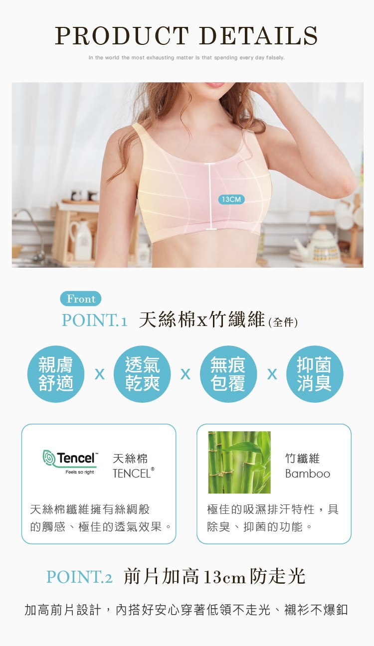 【台灣製】竹纖天絲棉無鋼圈無痕內衣 M-3XL/EQ|涼感透氣 親膚低敏 消臭大尺碼 6922-31 色 【可蘭霓Clany】