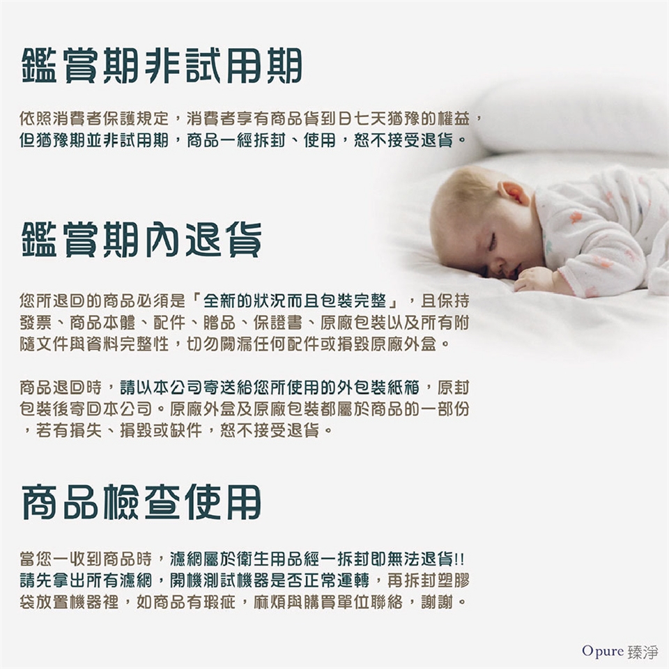 ★本產品屬衛生用品,可拆封鑑賞,但不可試用 濾網耗材一經拆封或試用即無法退貨,