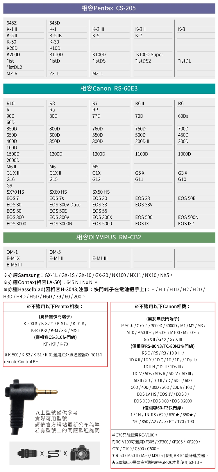 ◇可換線設計,讓只要您更換不同型號的"相機連接線Cable",一樣可以操控其它型號及其它廠牌的相機!
