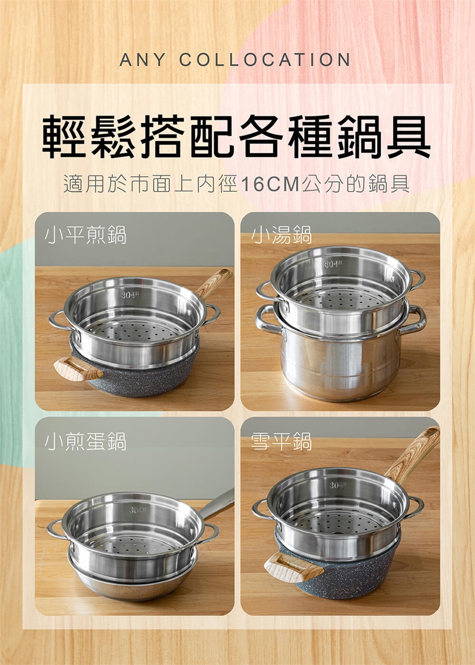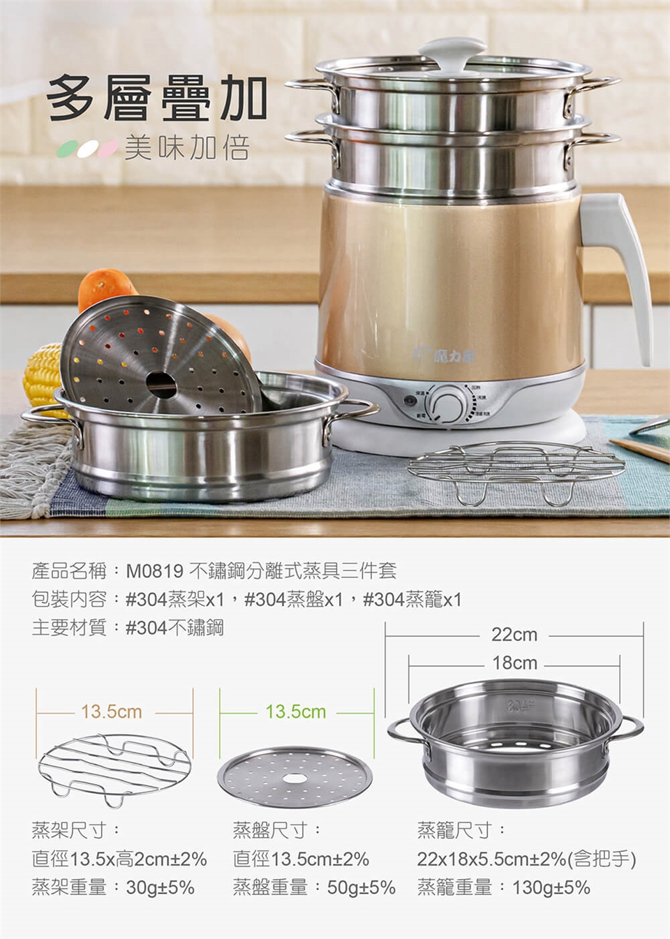 產品名稱:【MOLIJIA 魔力家】M0819不鏽鋼分離式蒸具三件套
