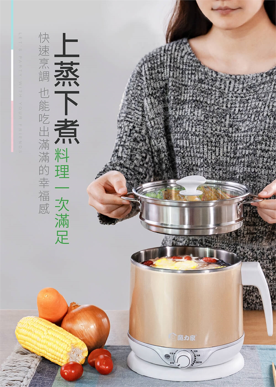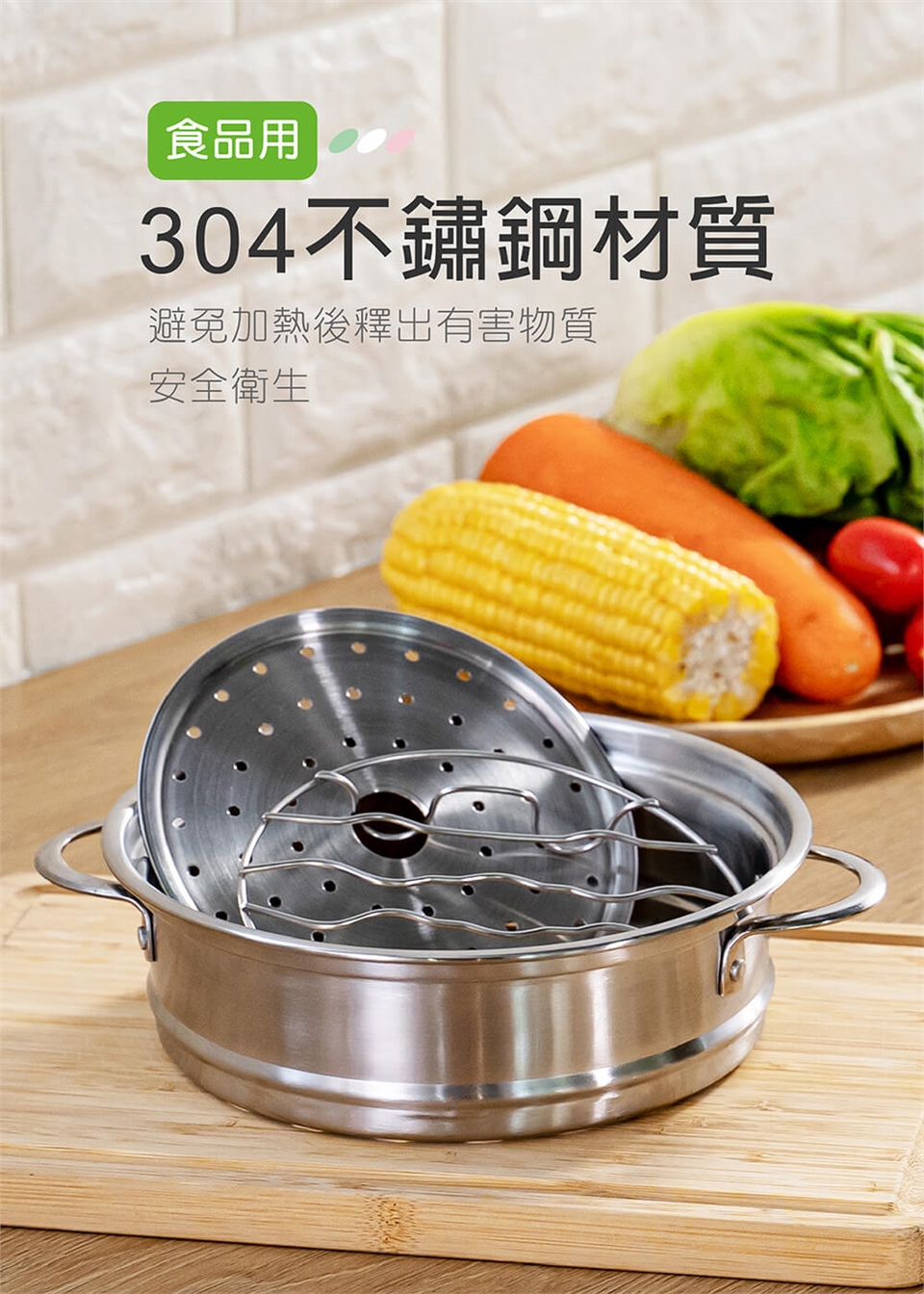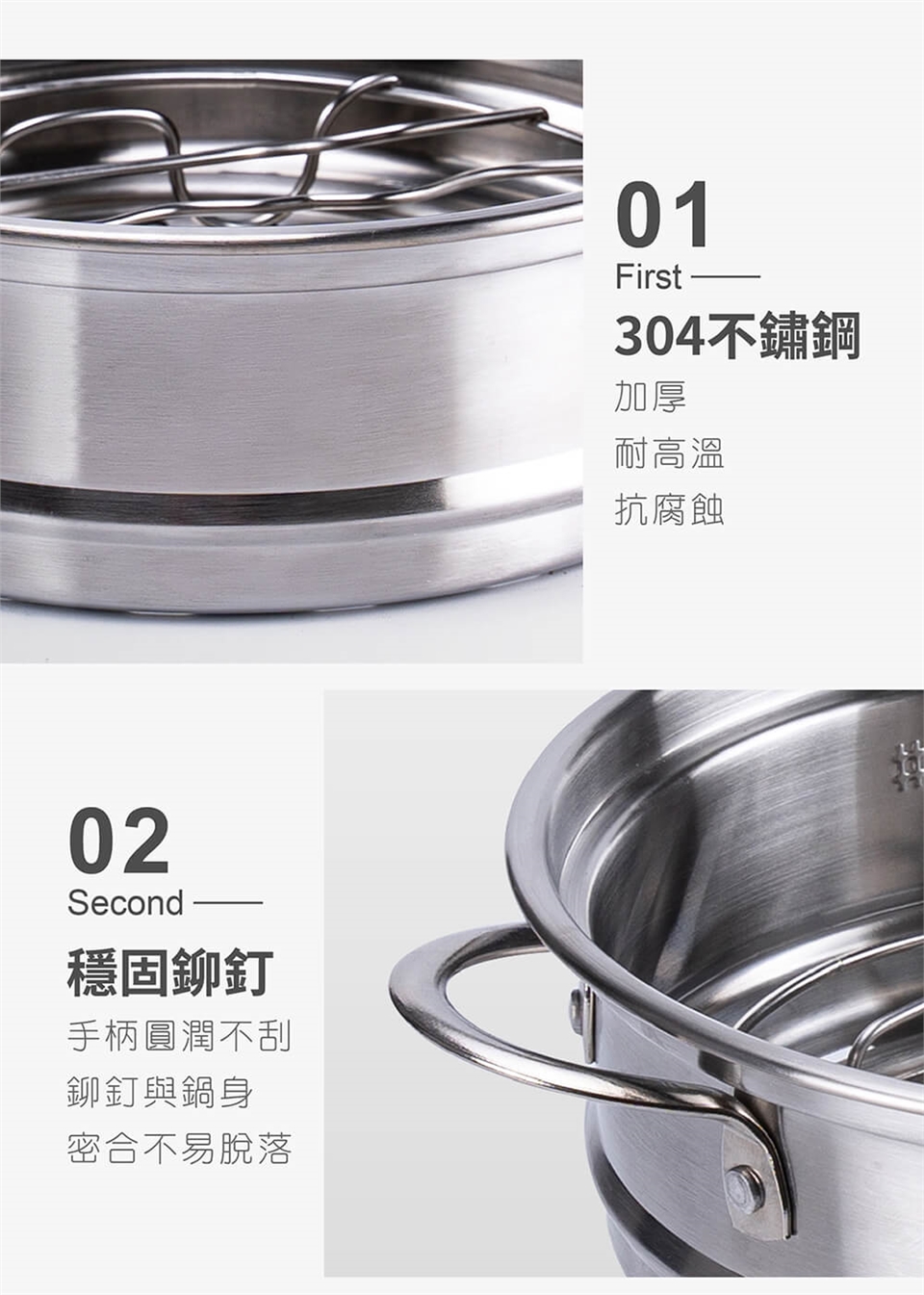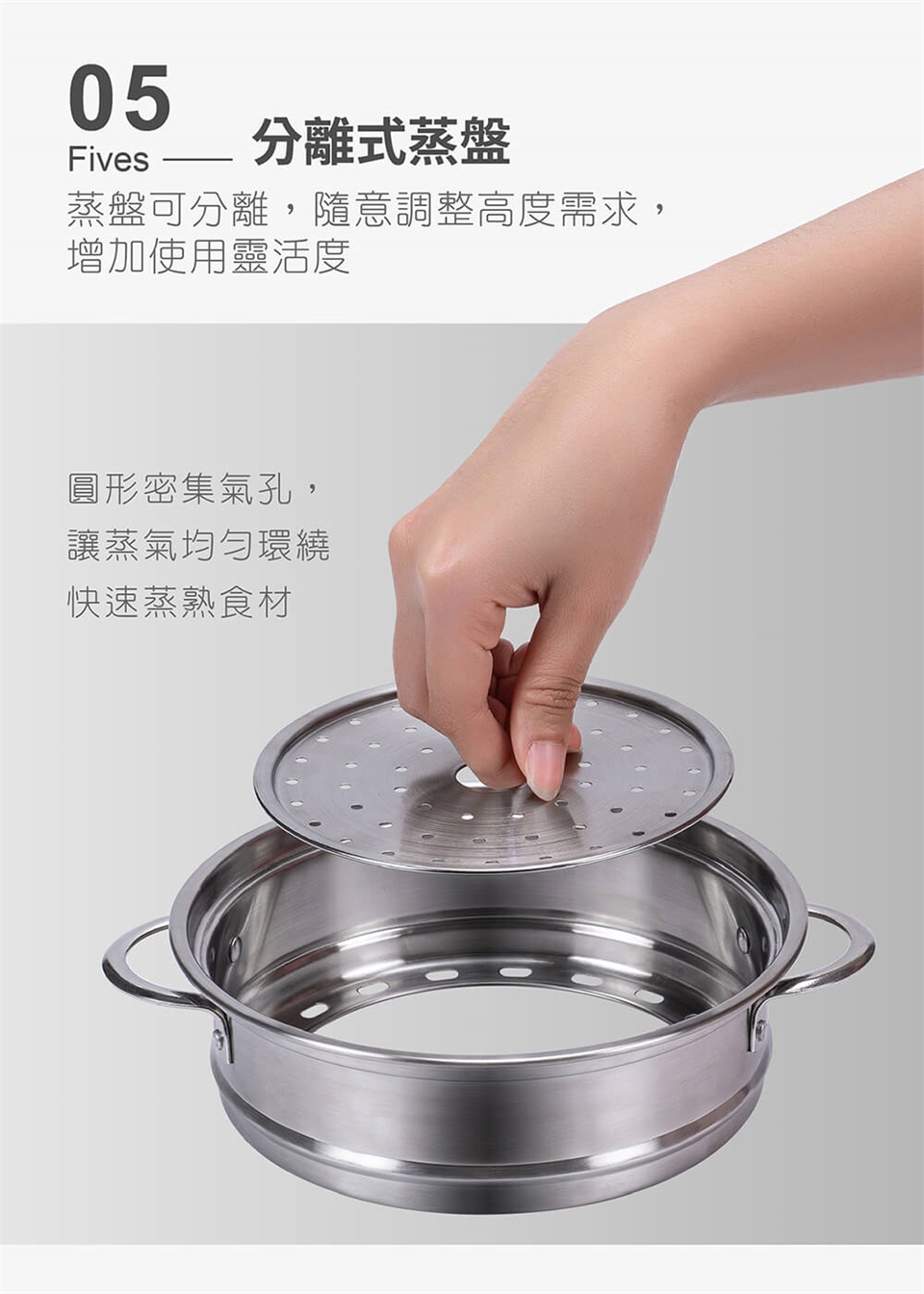 ※ 蒸具組傳熱效果佳,為安全起見,取出蒸架注意餘溫避免燙手。
