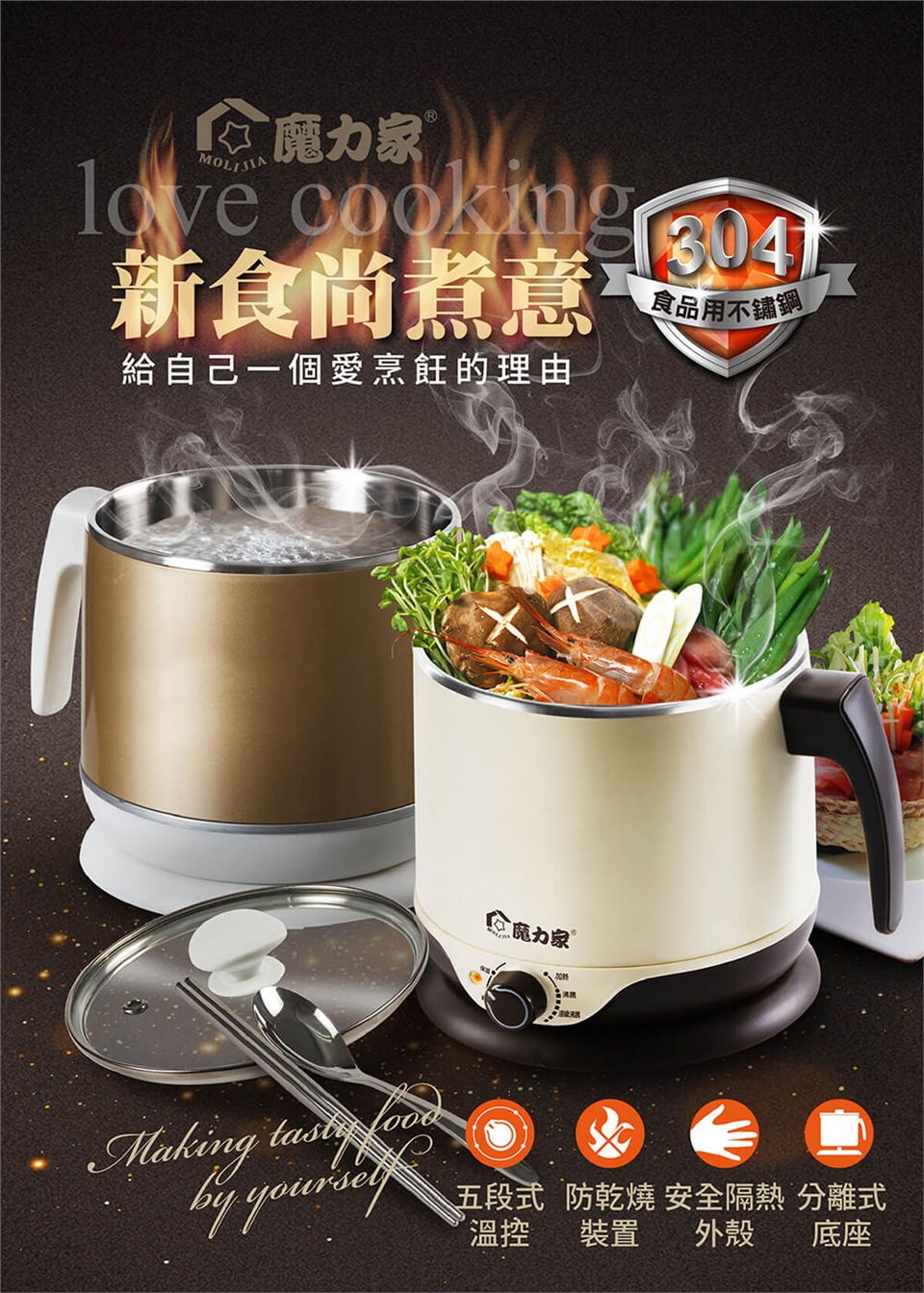 產品名稱:【MOLIJIA 魔力家】即食行熱-雙層隔熱防燙快煮美食鍋