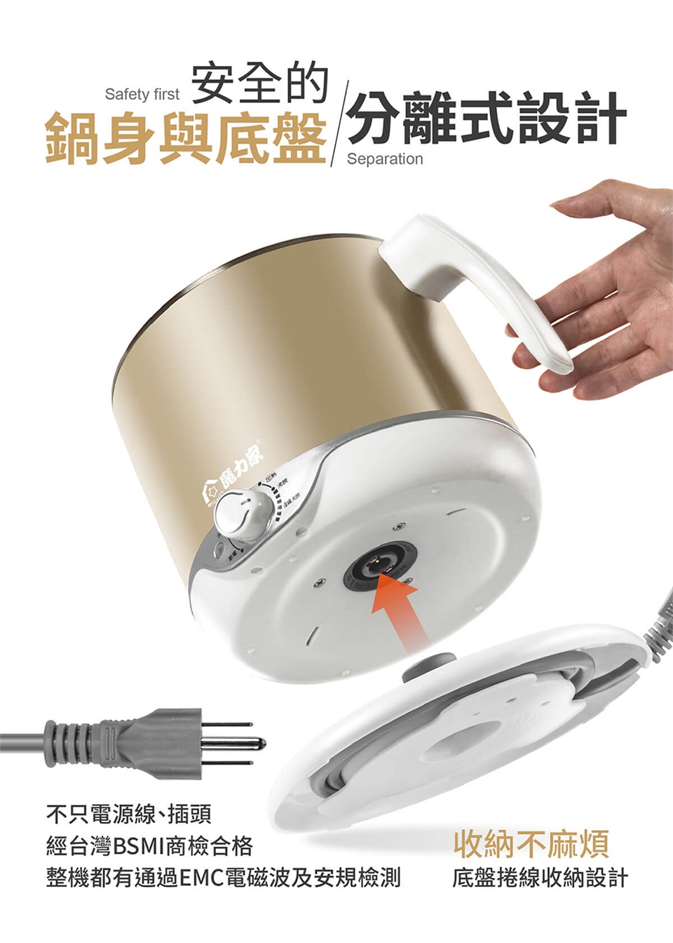 ※ 請使用本產品搭配的專用底座,請勿隨意將快煮鍋本體安裝在非本產品專用的底座上使用!