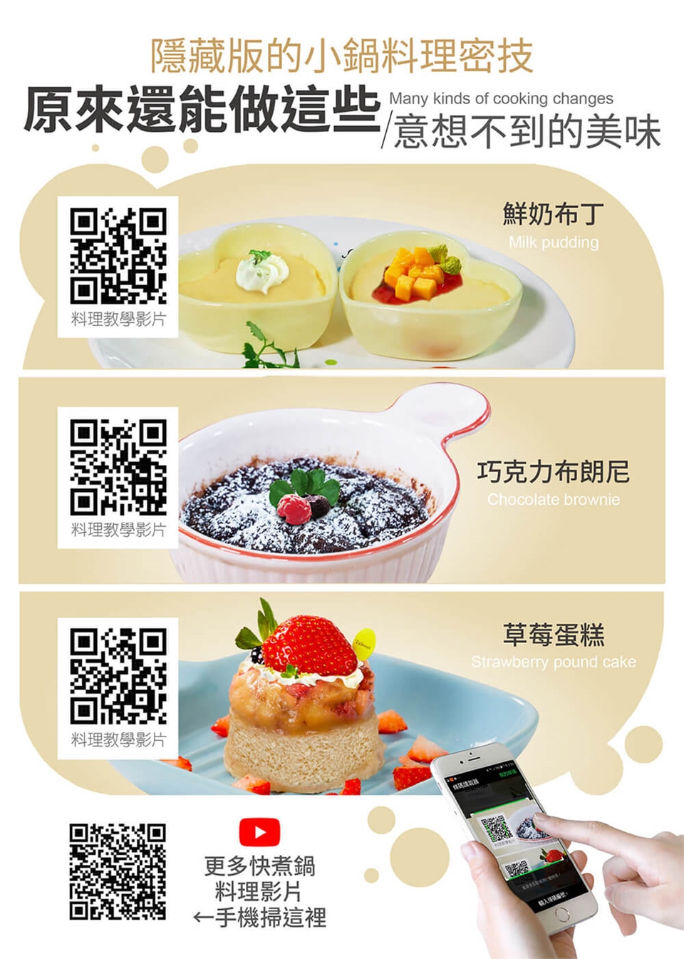 ※蒸具組傳熱效果佳,為安全起見,取出蒸架注意餘溫避免燙手。