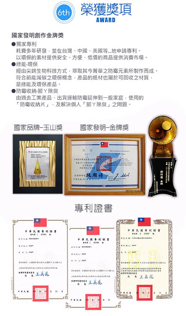 •每片適用於約 長90cm x 寬60cm x 高100cm之空間,如櫃子體積大於適用空間或發霉情況嚴重時,建議使用兩片以上之OK 收納防霉片。