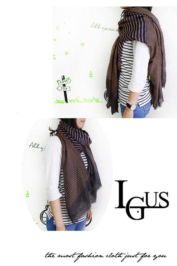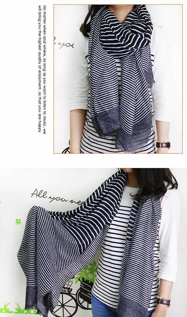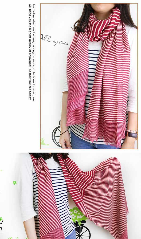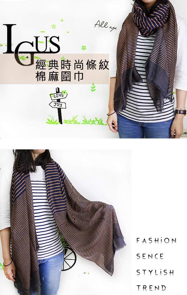 【Lus.G】經典時尚條紋棉麻圍巾